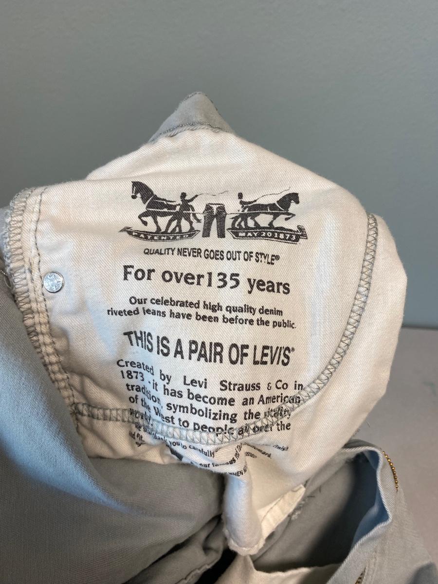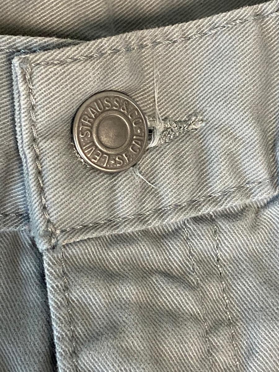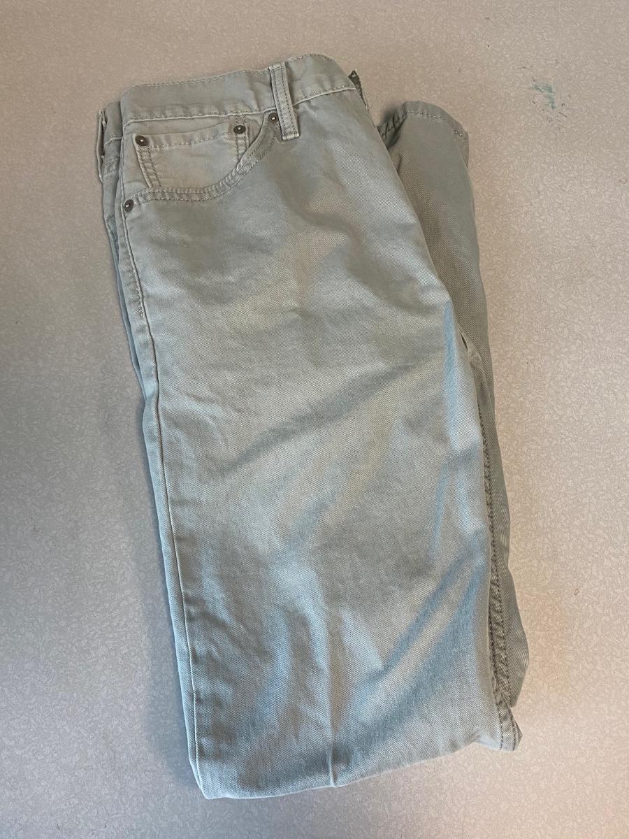 Levi's Brushed Denim Pants Jeans in a Pale Grey Blue color. No size tag. The label on back pocket has been removed also. Super soft denim. Good condition.
