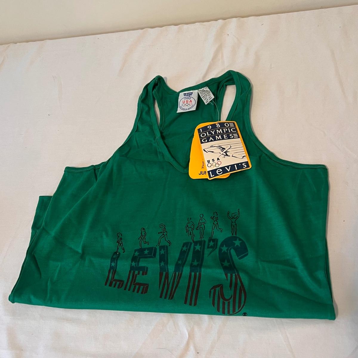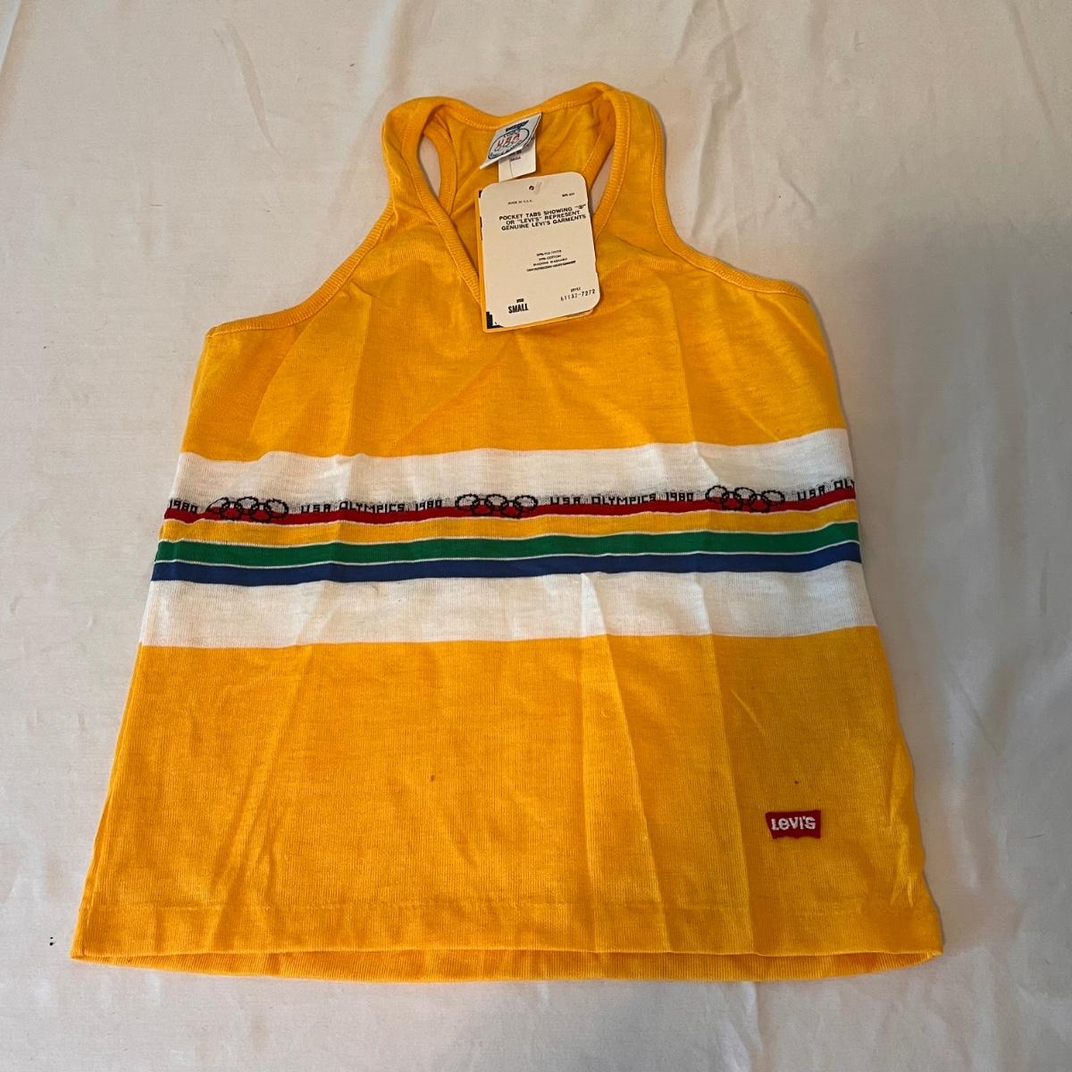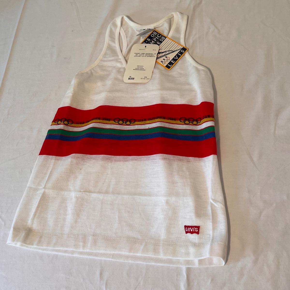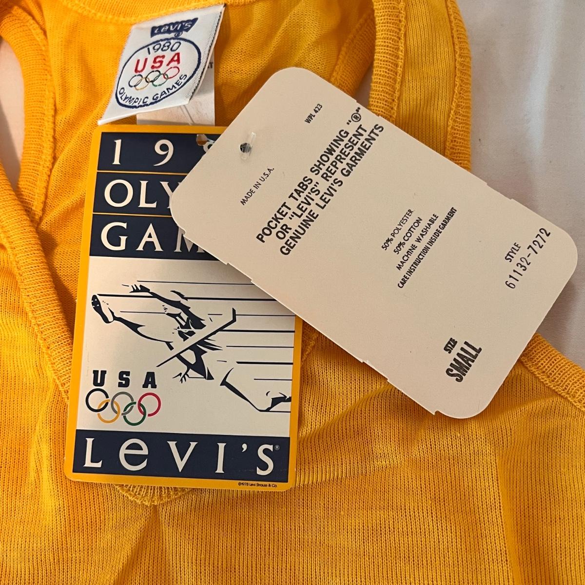 This lot includes ten pieces of Levi’s USA Olympic clothing from the 1980’s in junior sizes. There are tank tops and cropped shirts. They all appear to be unworn and several have their purchase tags attached. Sizes range from Junior Small to Junior Large. Shipping available.