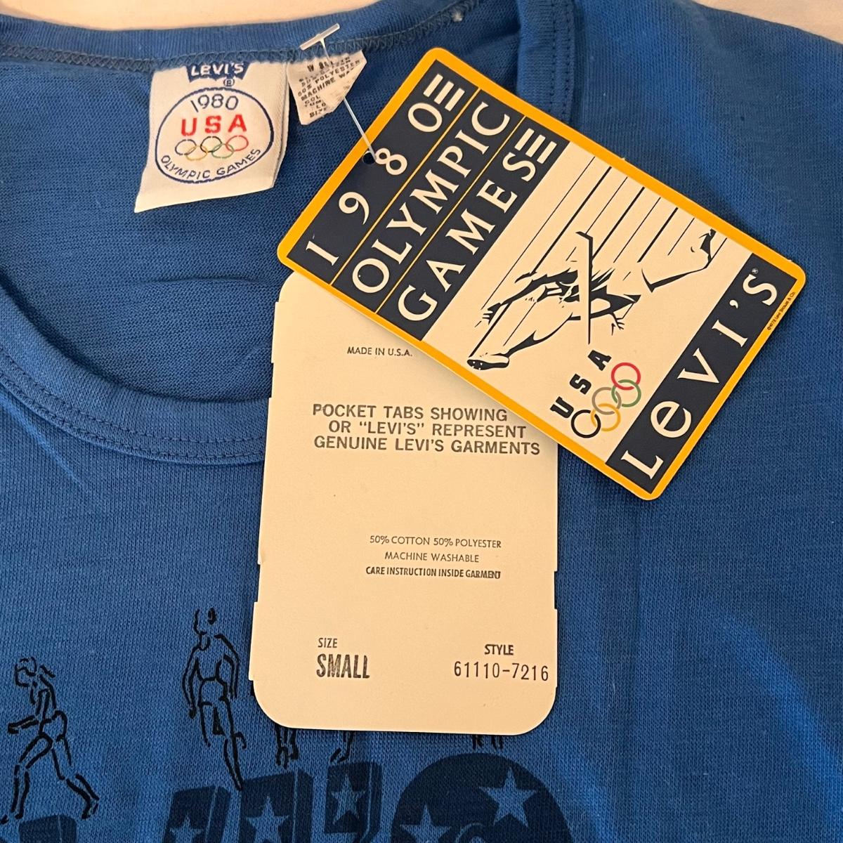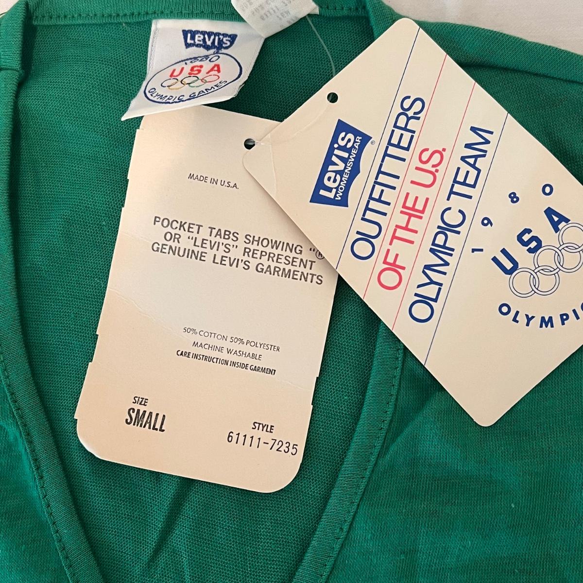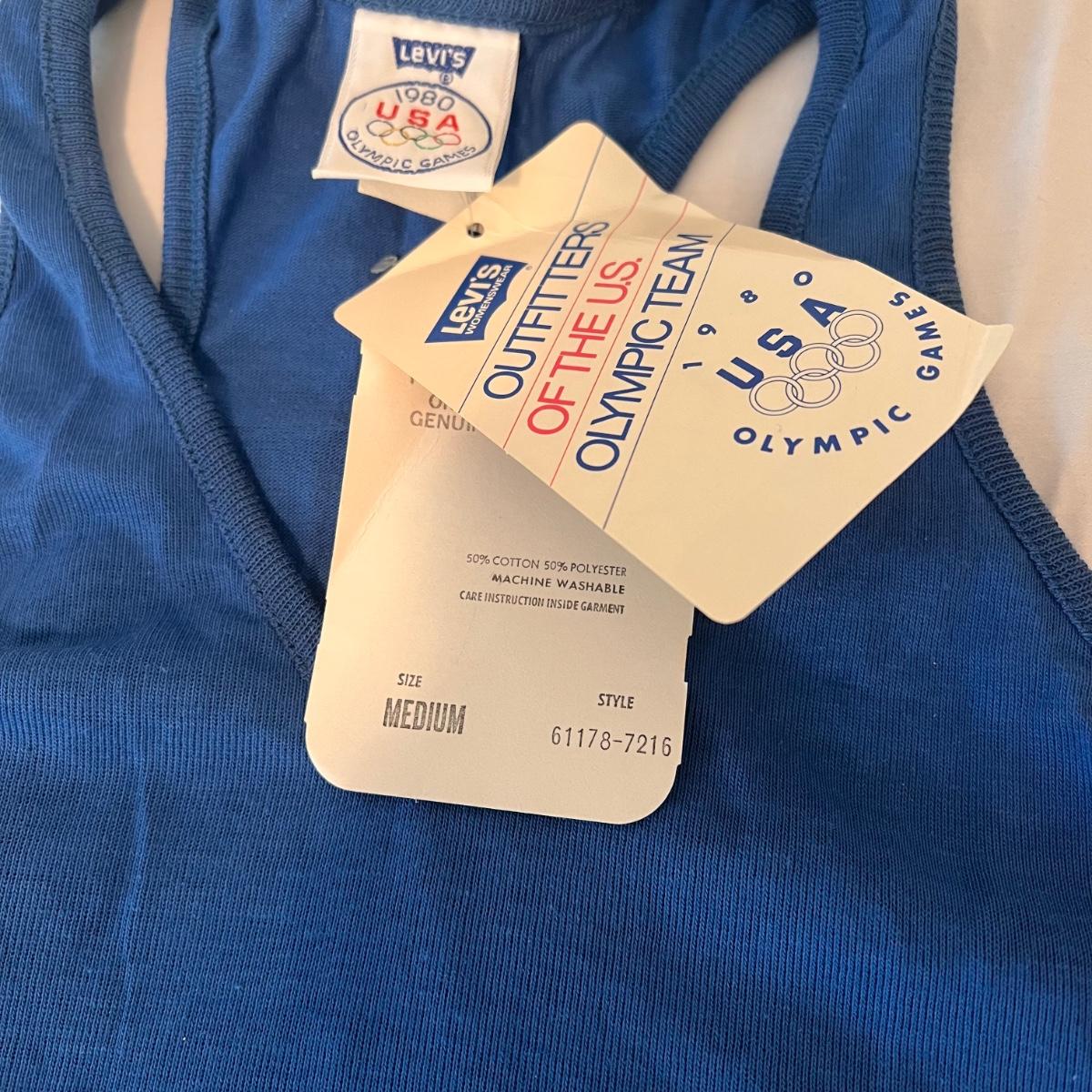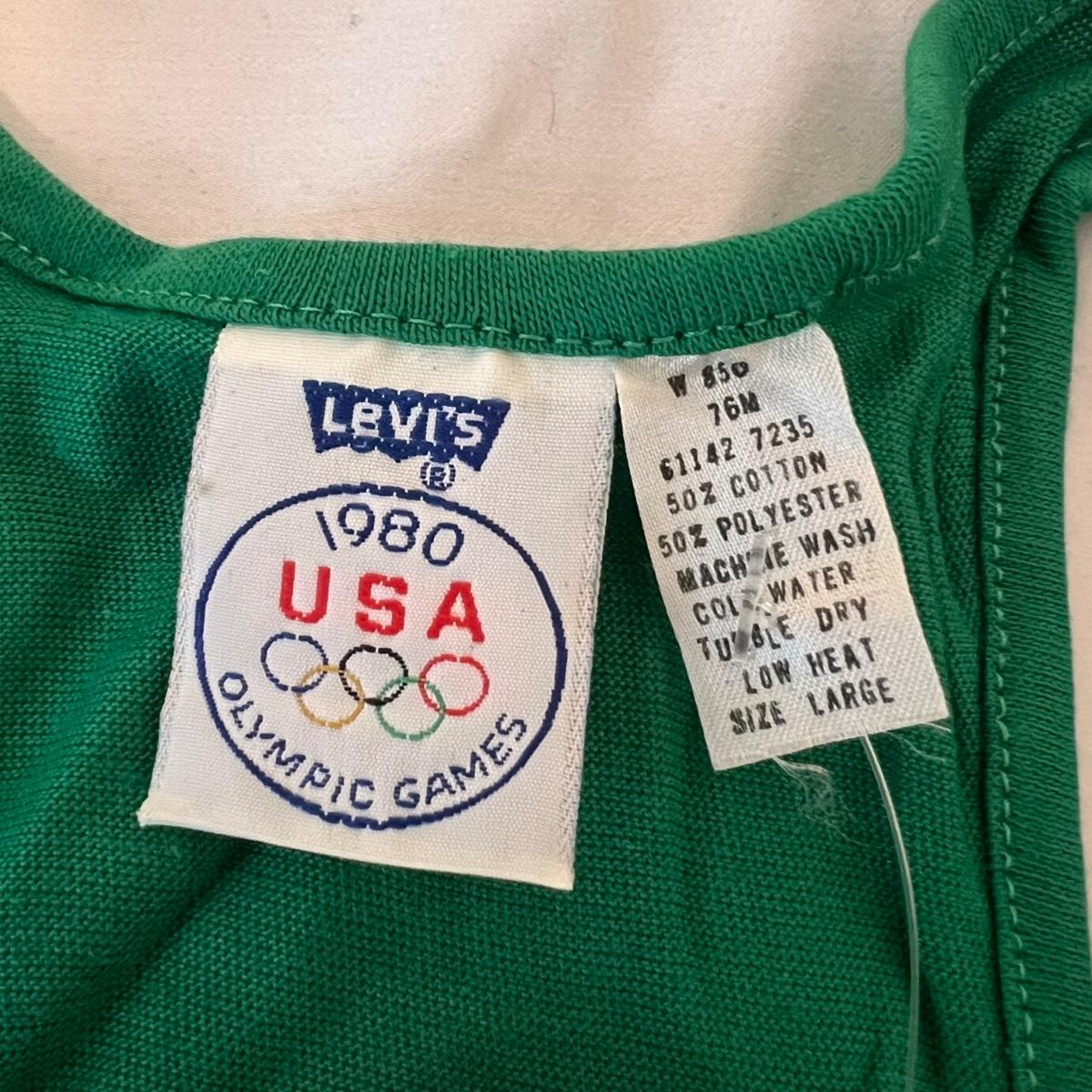 This lot includes ten pieces of Levi’s USA Olympic clothing from the 1980’s in junior sizes. There are tank tops and cropped shirts. They all appear to be unworn and several have their purchase tags attached. Sizes range from Junior Small to Junior Large. Shipping available.
