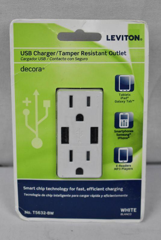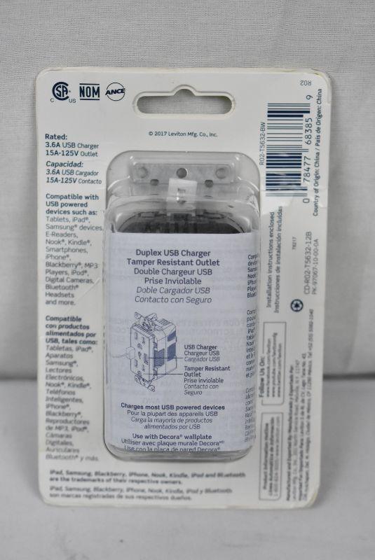 Leviton R02-T5632-0BW 15 Amp White USB & Receptacle Combination Outlet - New