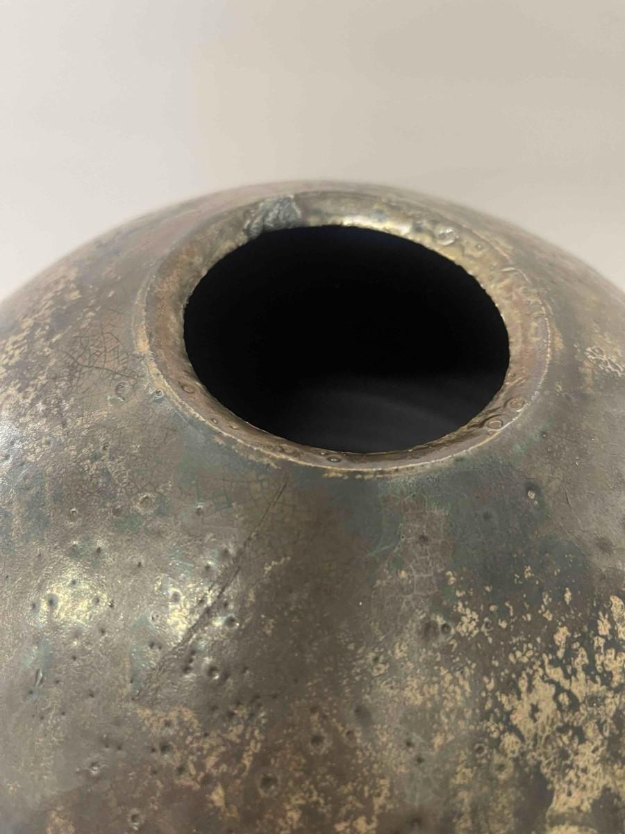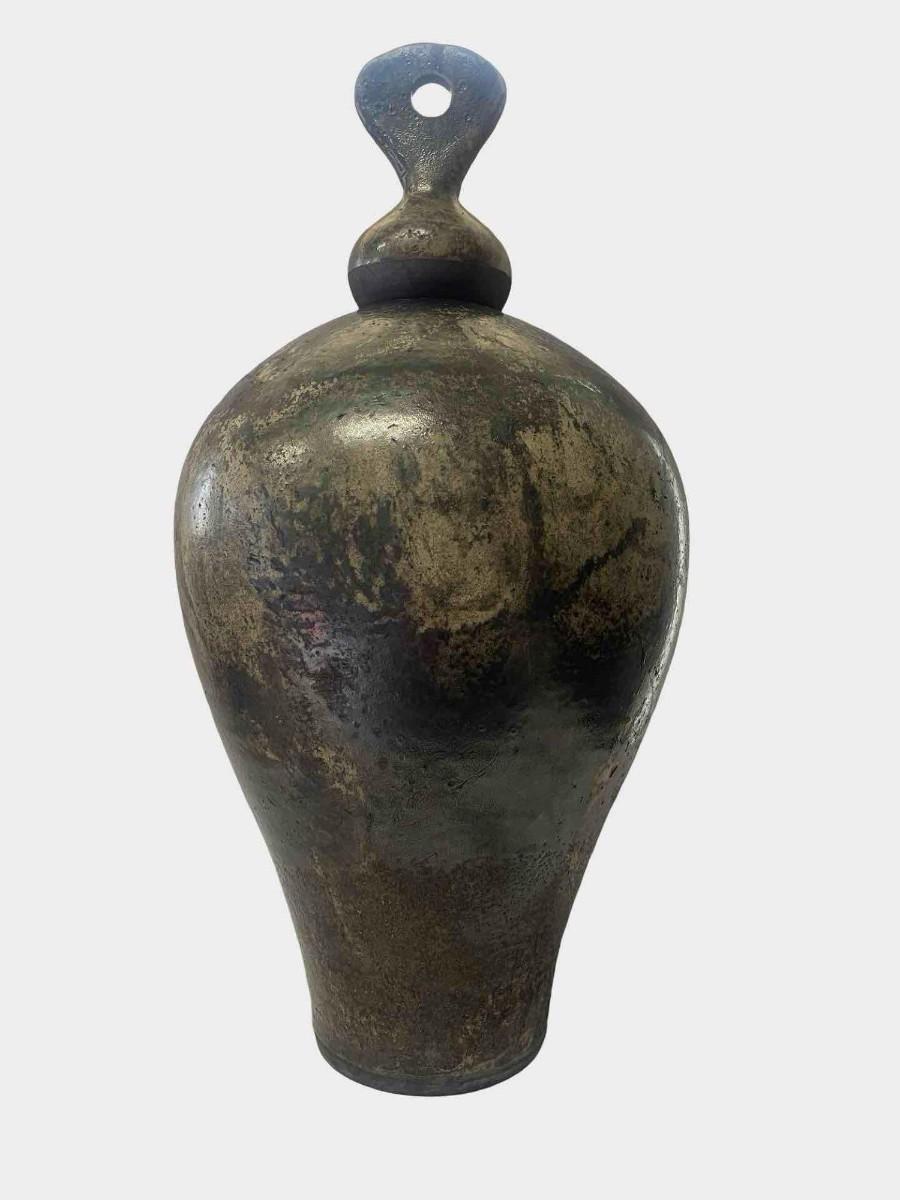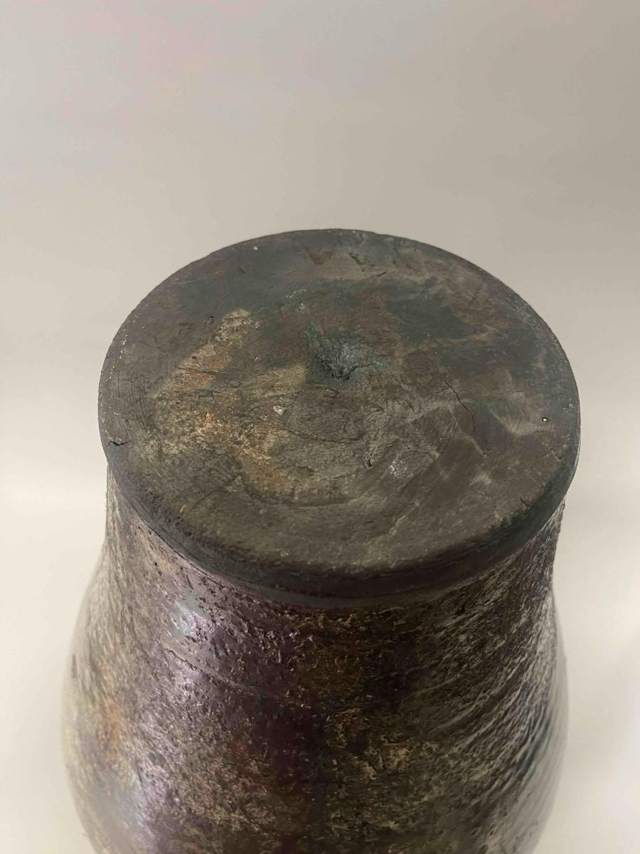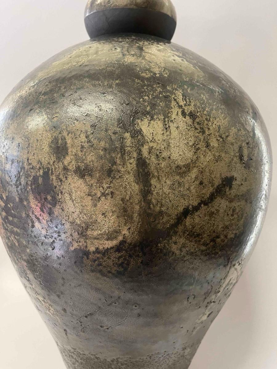 <p>Lew Ayres Raku Pottery Vessel with Lid. 25” to top of lid. Excellent condition. Signed on the bottom. </p>