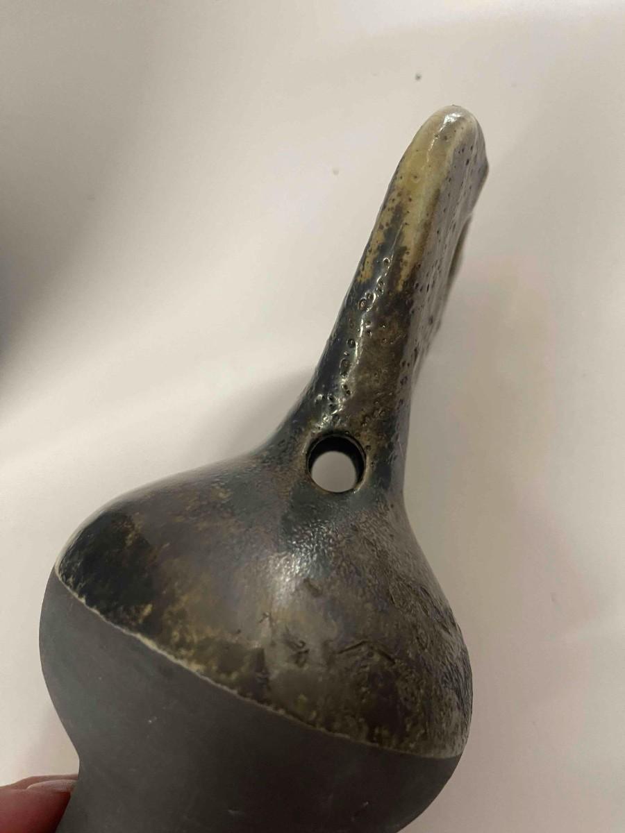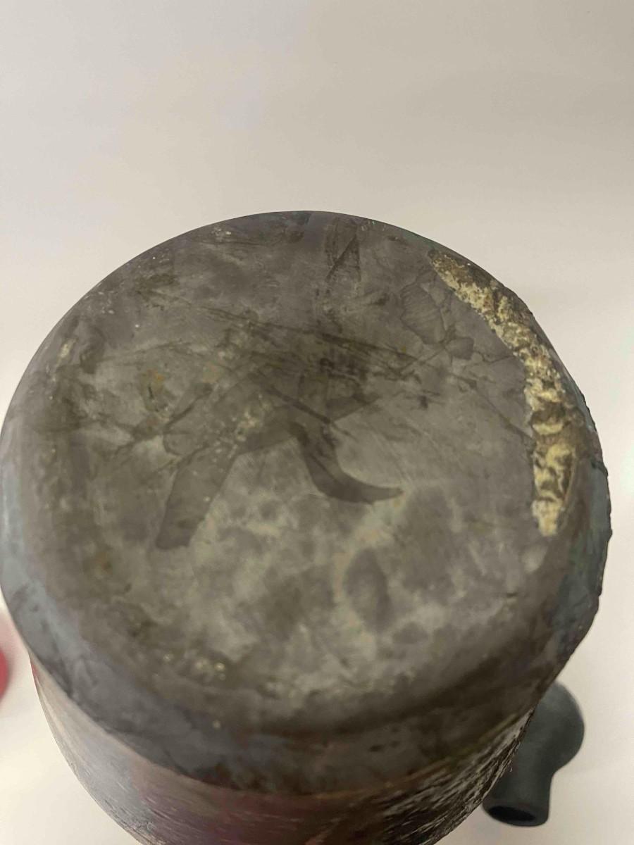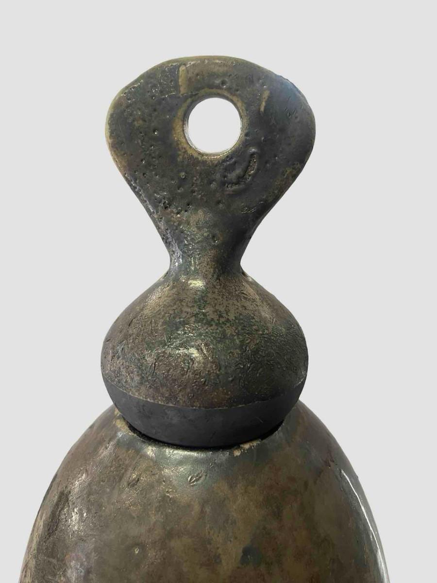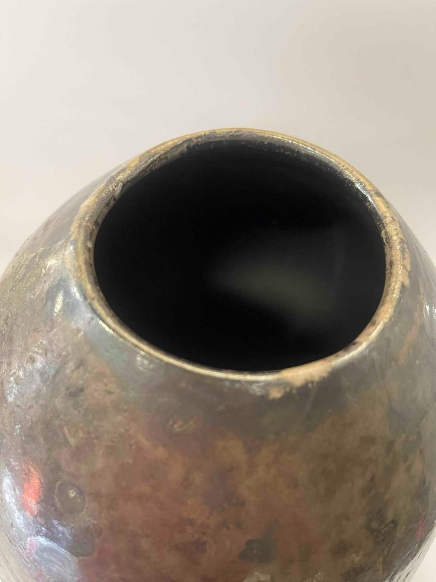 <p>Lew Ayres Raku Pottery Vessel With Lid #2. We have three pieces in total up for auction in varying sizes. All in very good condition. This one is the tallest at 24” to the top of the lid. Shows minor wear consistent with age and use. signed LA in the bottom, please not signature is faded but present. </p>