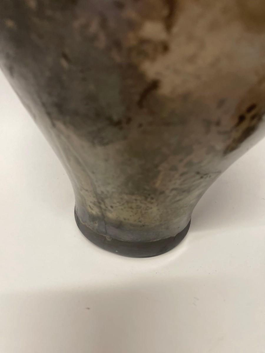 <p>Lew Ayres Raku Pottery Vessel with Lid #3. There are three Lew Ayres pottery pieces available for auction from this collection. This is the smallest at 17”. All in very good condition. Signed LA on the bottom. </p>
