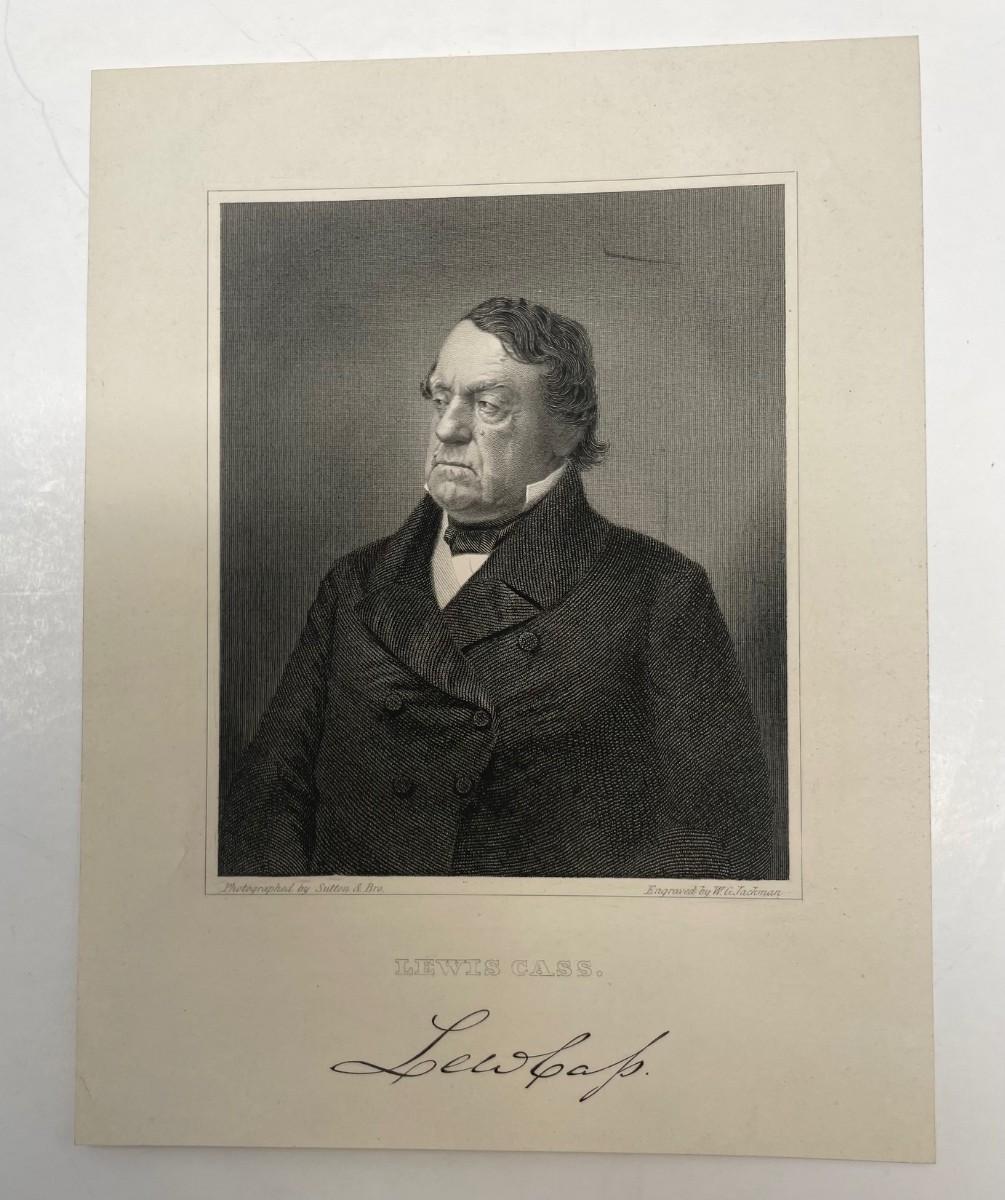 Description: Lewis Cass Engraved by W. G. Jackman; Measuremnts: 7x5.5 inches