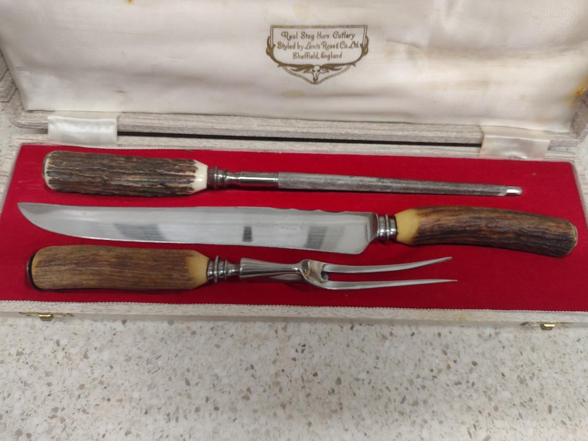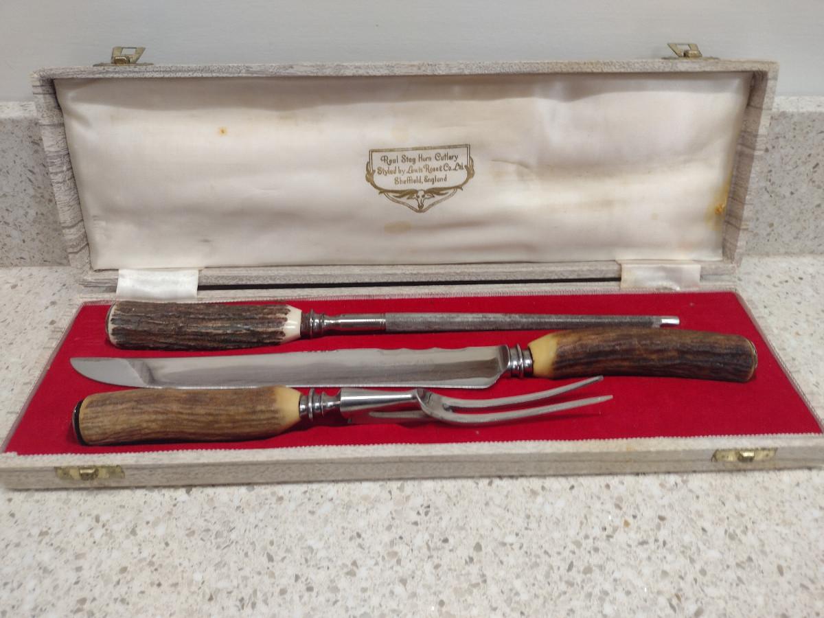 Lewis Rose & Co Sheffield, England Stag Handle Carving Set