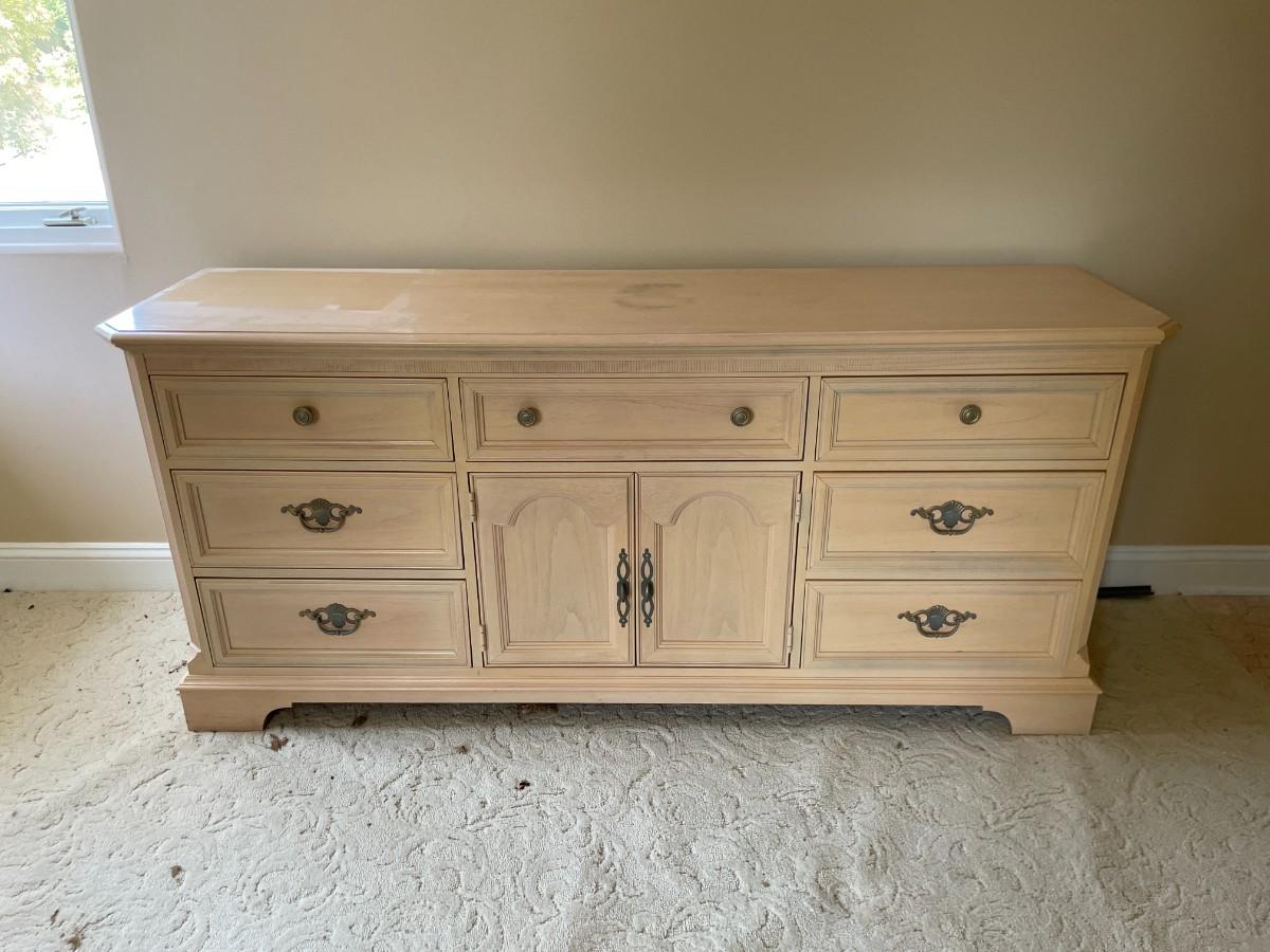 LEXINGTON Blonde 8 Drawer Long Dresser with Mirror