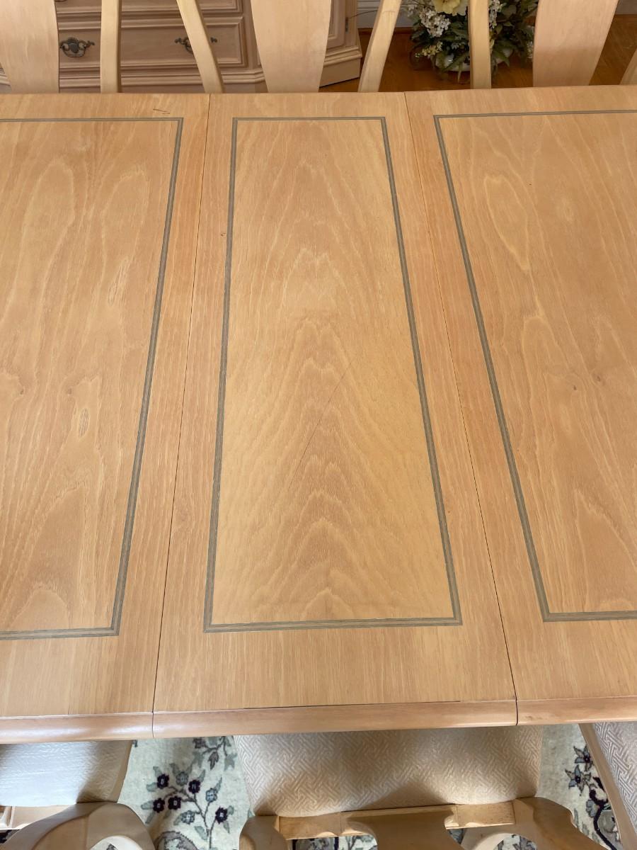 Beautiful Pickled Oak Lexington Dining Room Set includes Dining Room Table with leaf in 80L x 44W x 28 1/2H. Leaf measure 14 1/2W. Includes 8 chairs. LOT # 78, 79 & 80 make a complete dinning room set