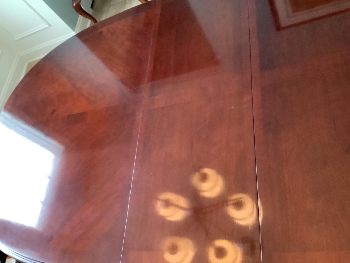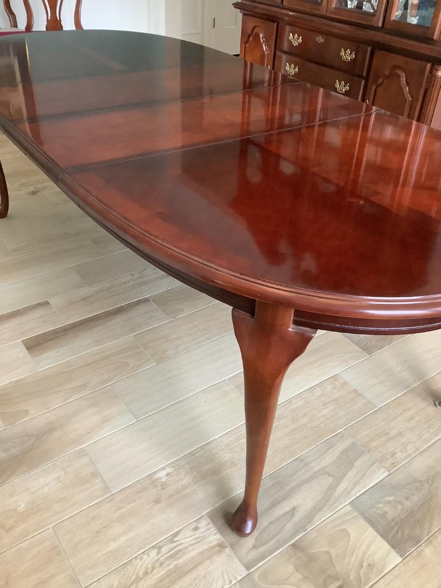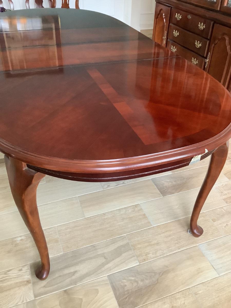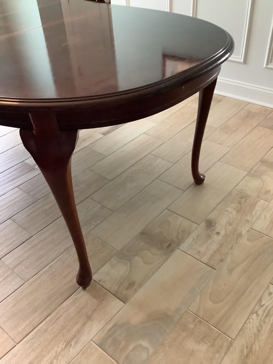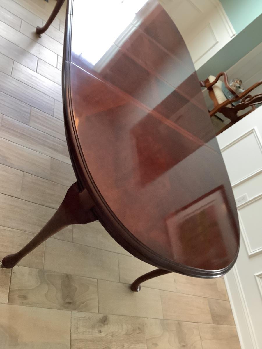 Lexington furniture dining table with pads & 2 leaves 30”H, 93”L with leaves, 44”W, leaves 15”W each