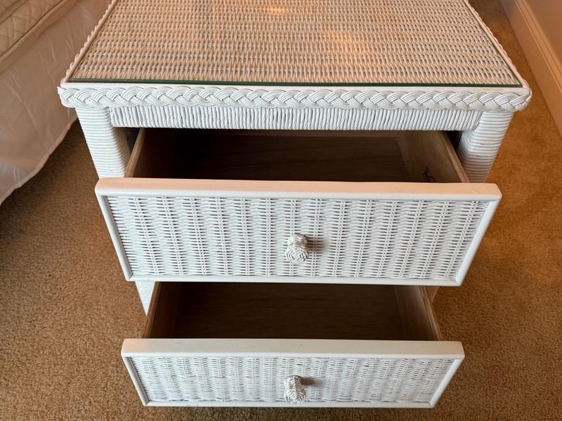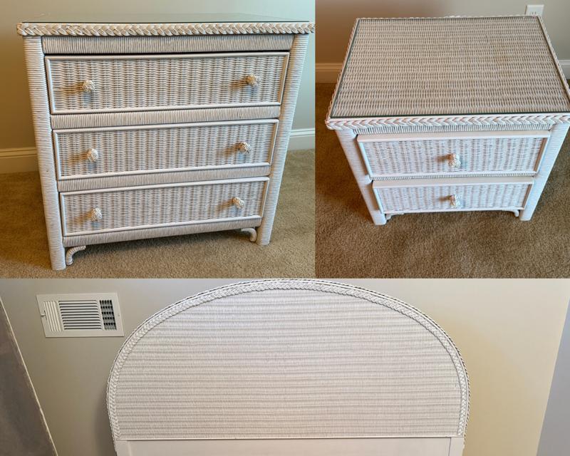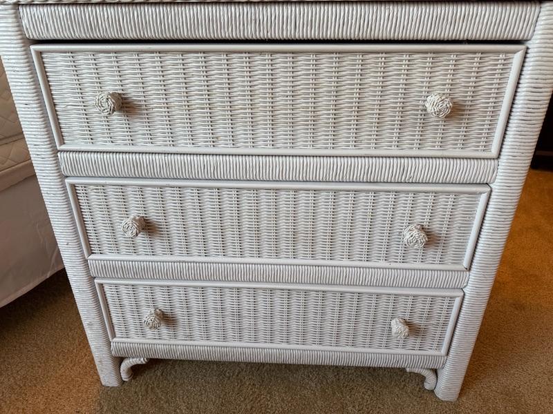 Lexington Furniture Wicker Dresser, Night Stand, Headboard, and Bedframe. Made in the USA! Winning bidder is also welcome to mattress and box spring.