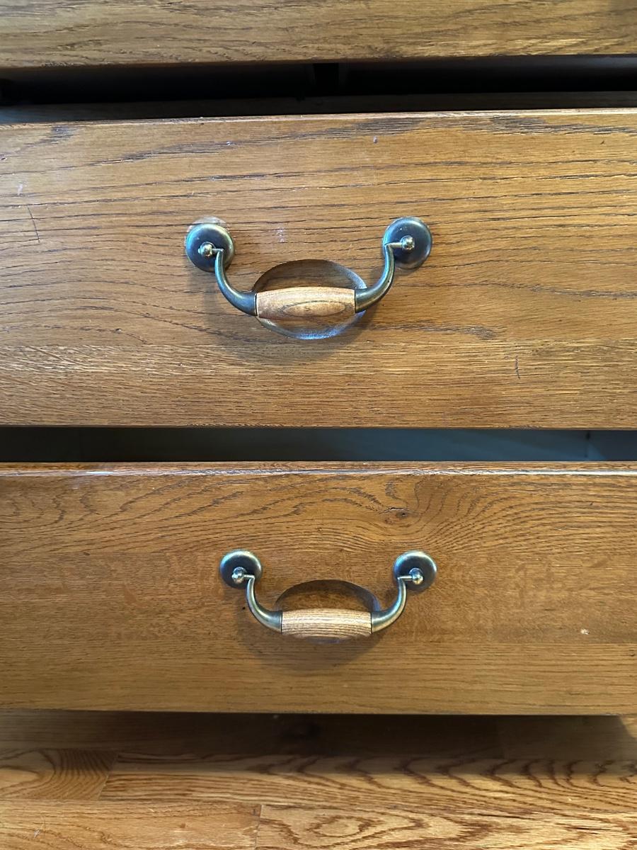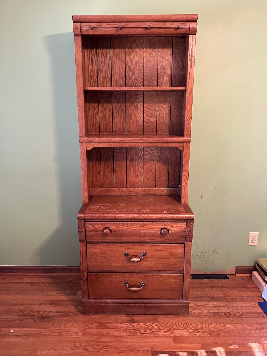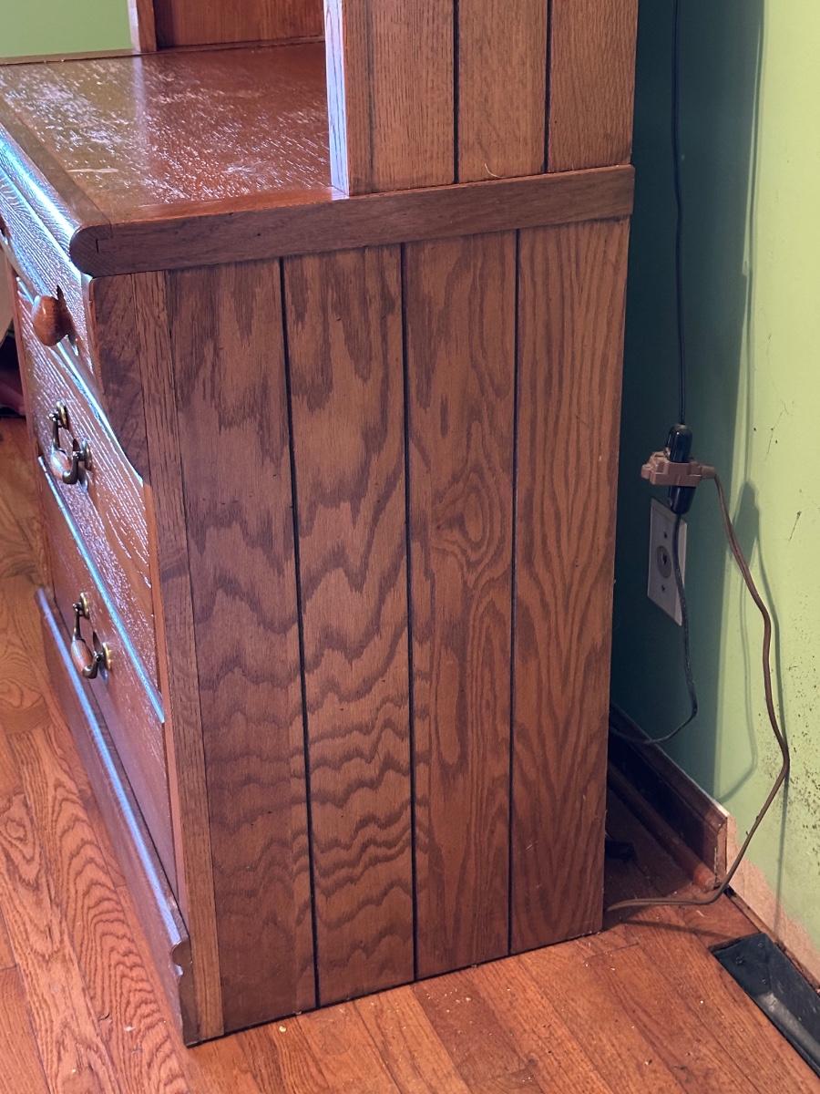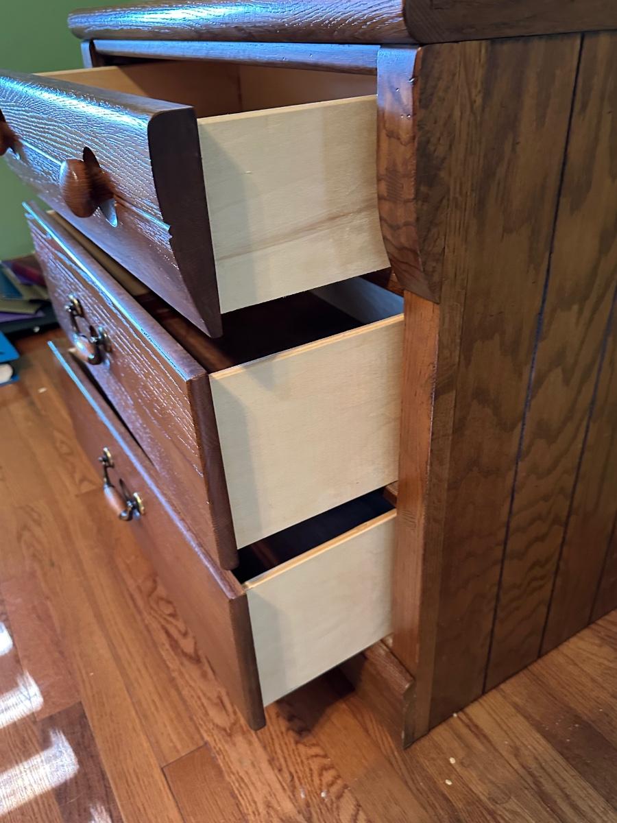 30.5” L x 18” Depth x 78.5” H / There is a light residue within one of the drawers, but can likely be removed.