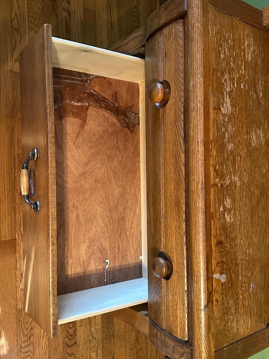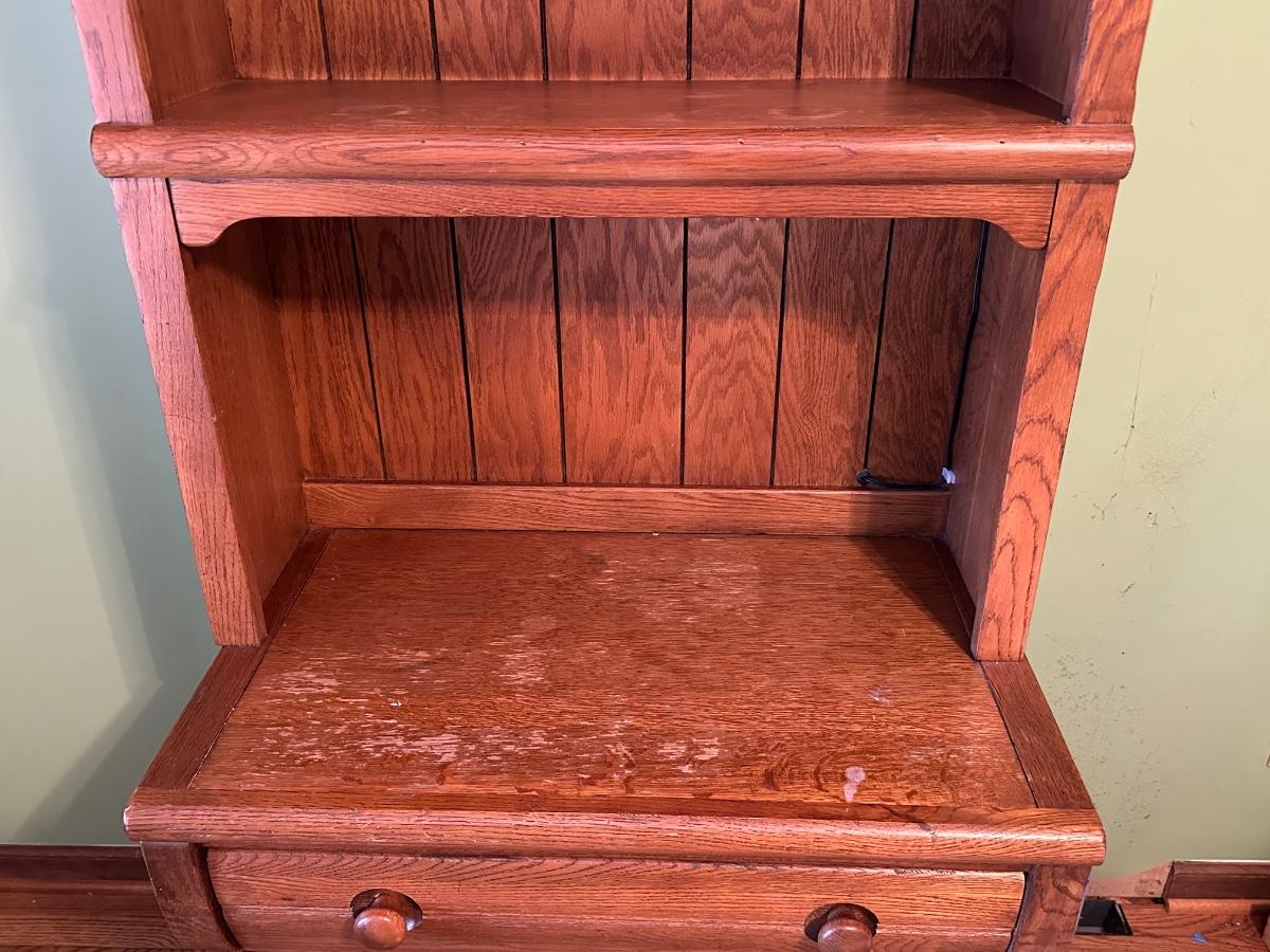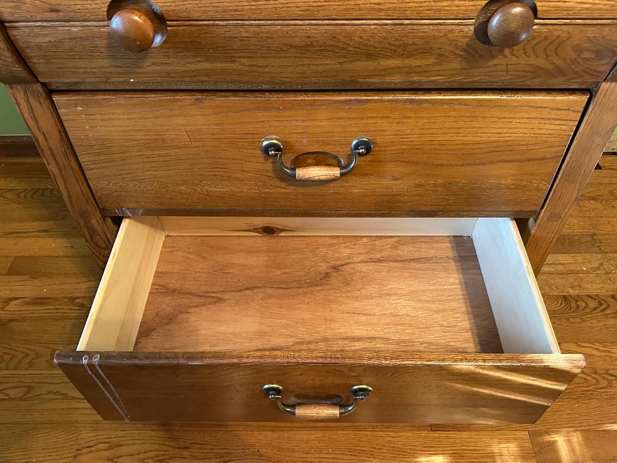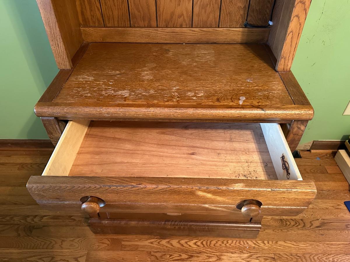 30.5” L x 18” Depth x 78.5” H / There is a light residue within one of the drawers, but can likely be removed.