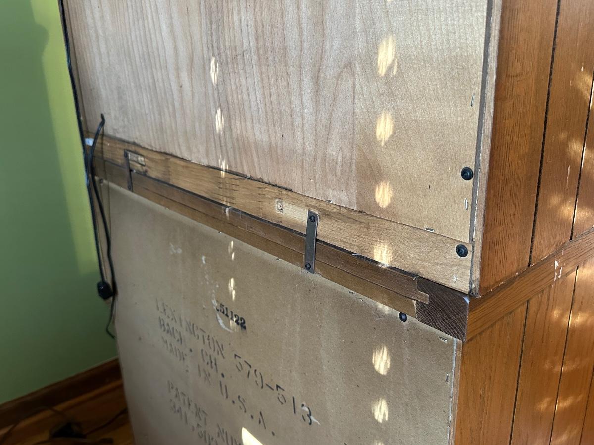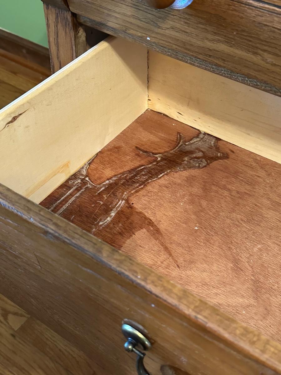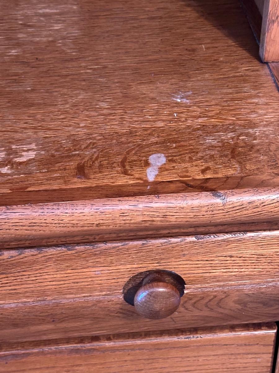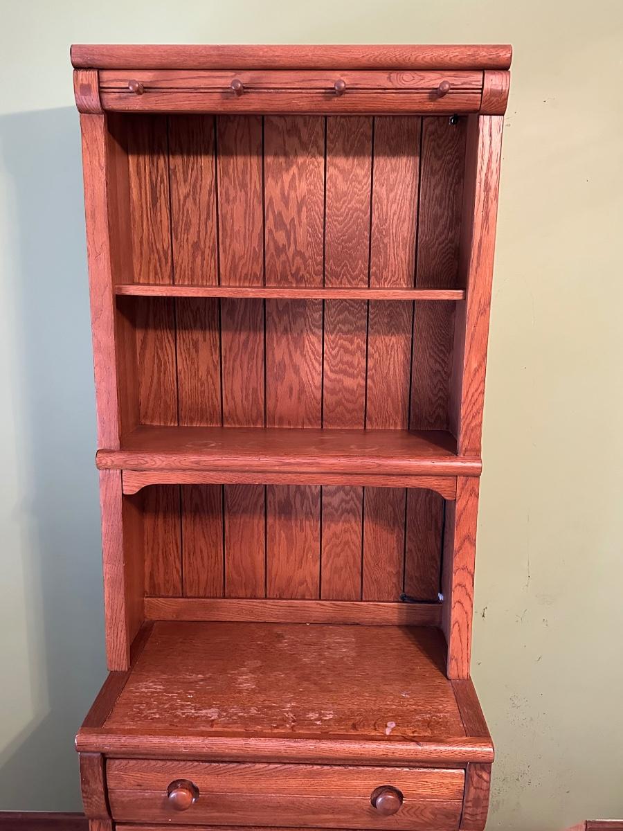 30.5” L x 18” Depth x 78.5” H / There is a light residue within one of the drawers, but can likely be removed.