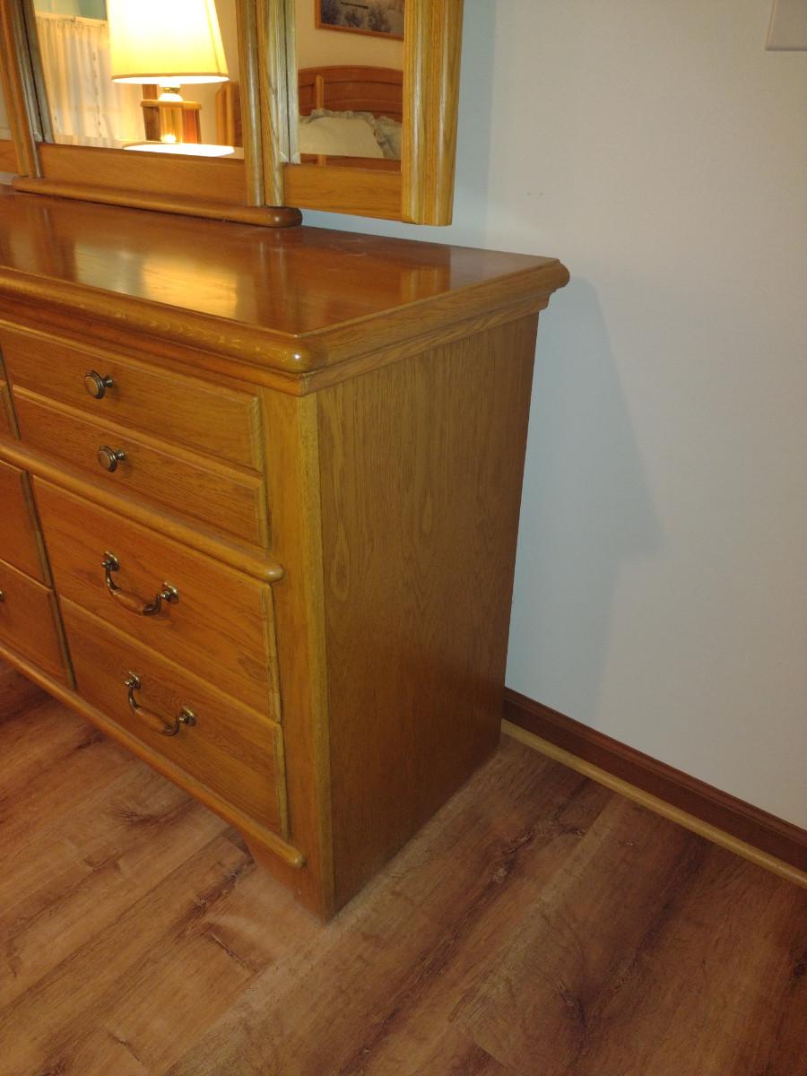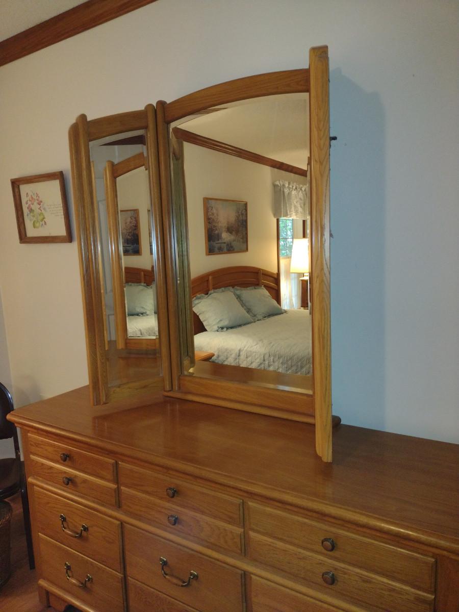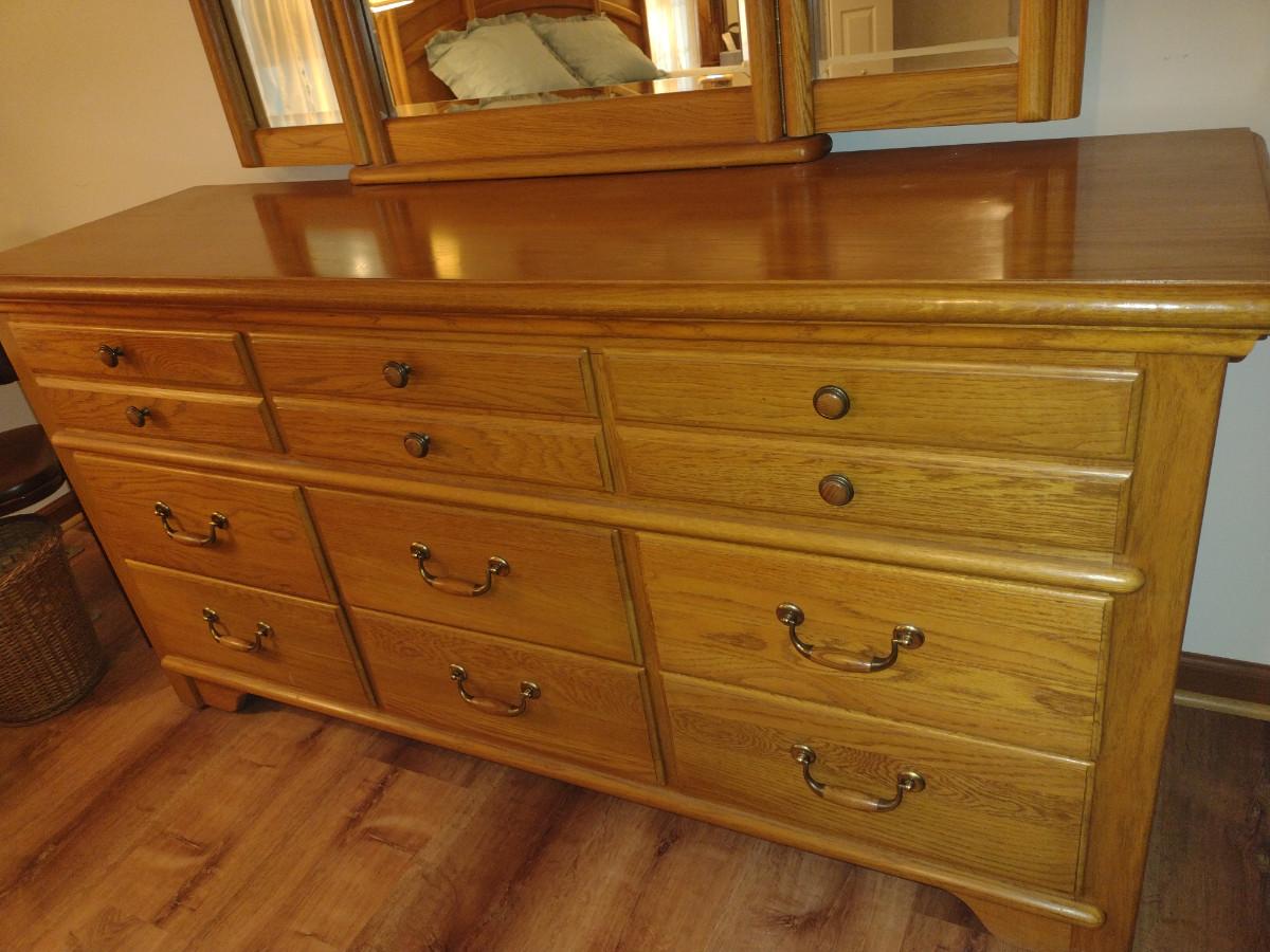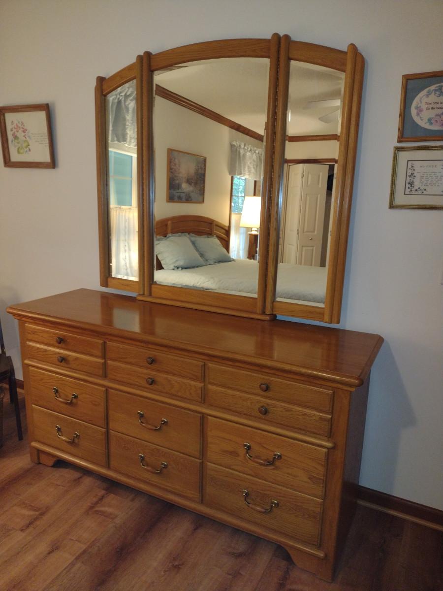 Lexington Solid Wood Stretch Dresser with 3 Panel Dressing Mirror. Approx 64" long.