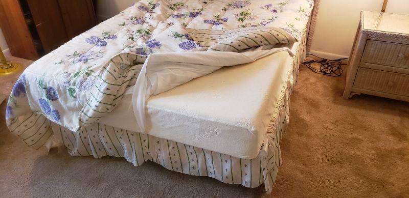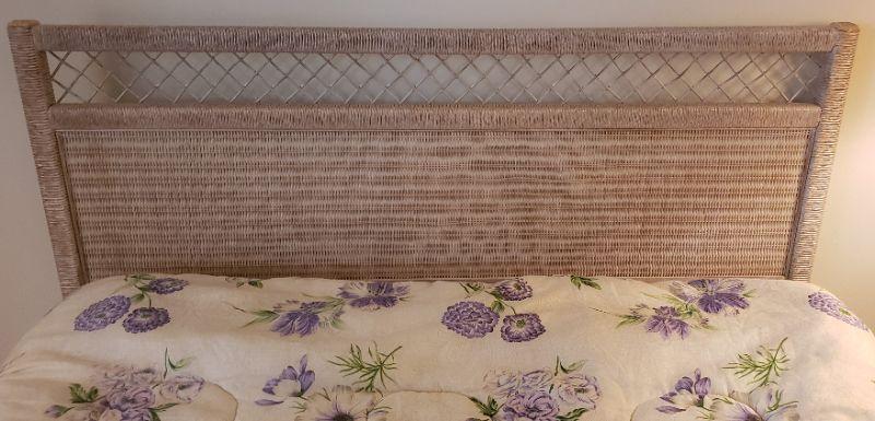 Lexington White Wicker Queen Bed with Tempur-Pedic Mattress