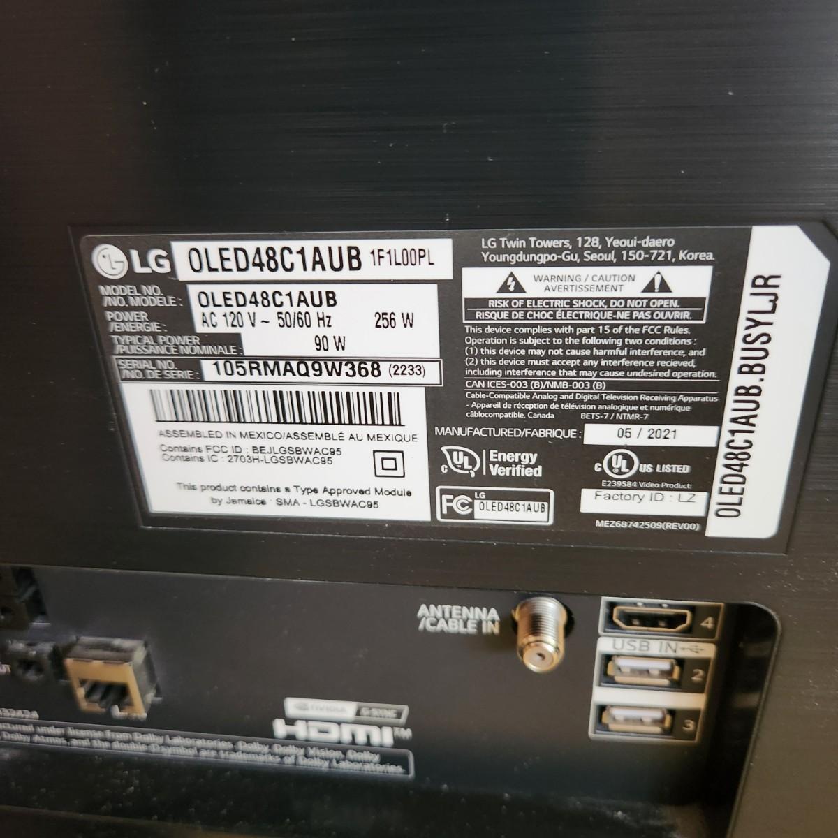 LG 48" Television TV OLED48C1AUB w Remote Tested Working