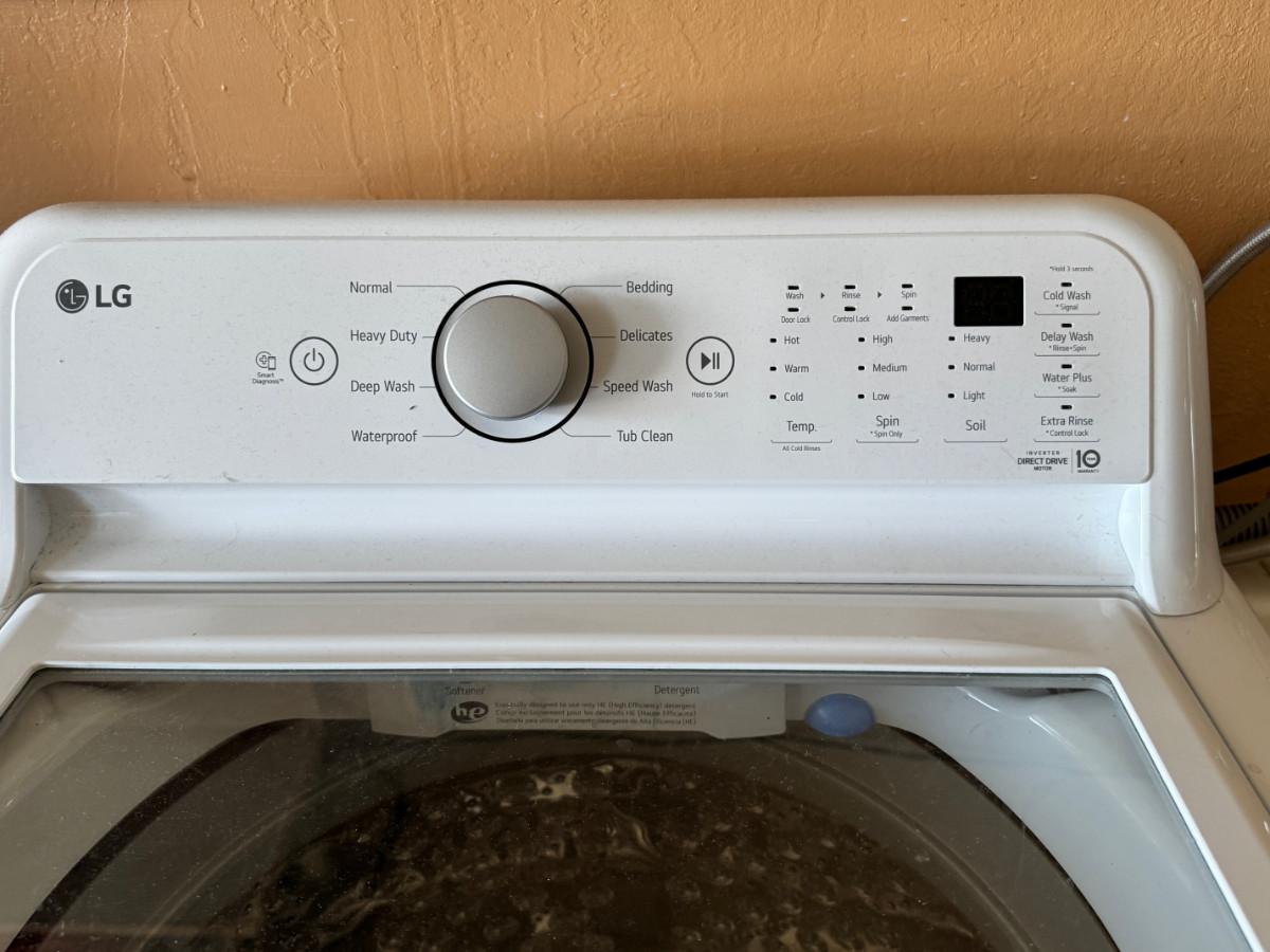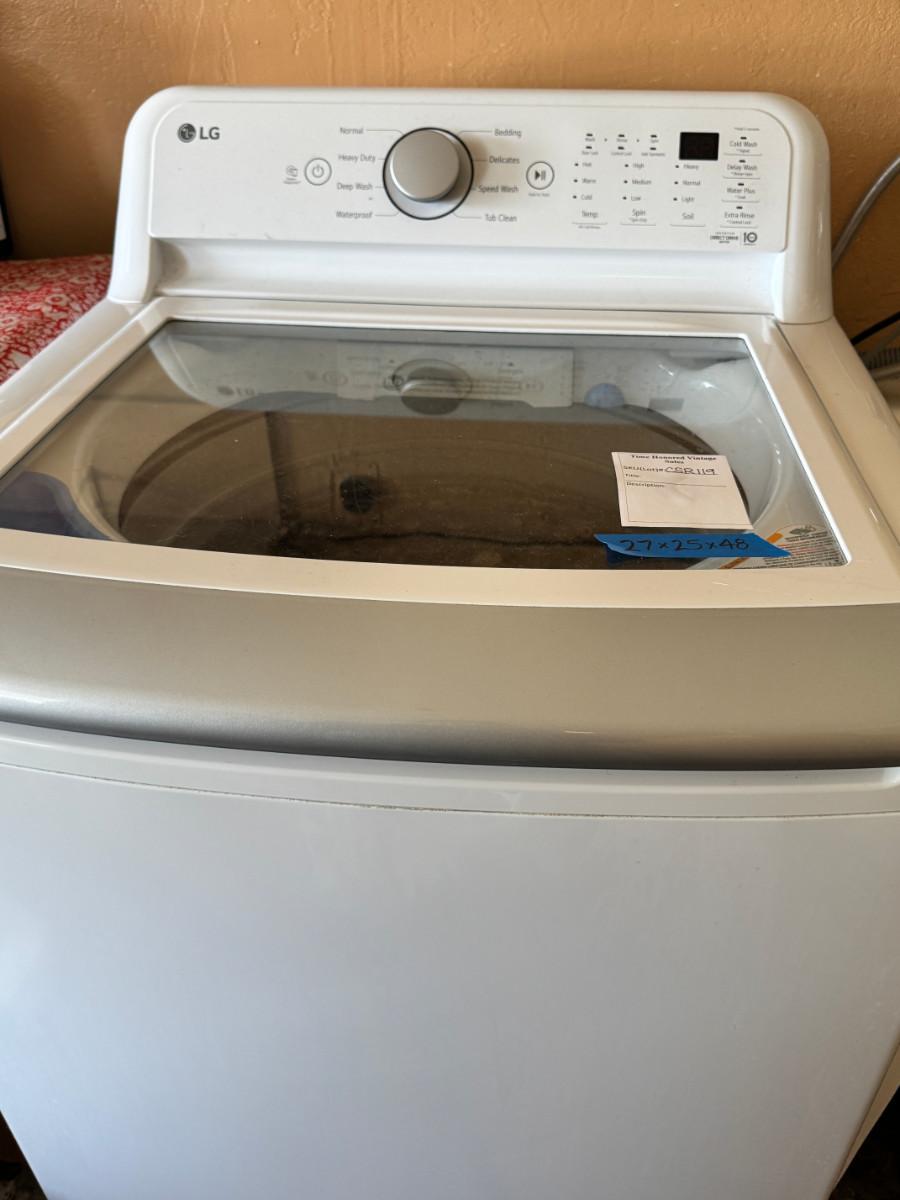 Clean working large capacity washer, 1994 electric washing machine 27X25X48 The LG W17150CW (often listed as WT7150CW) is a popular 5.0 Cu. Ft. high-efficiency top-loader praised for its large capacity (great for bulky items like comforters), quiet operation, and strong spin cycle.