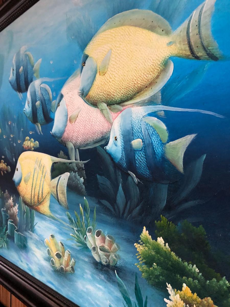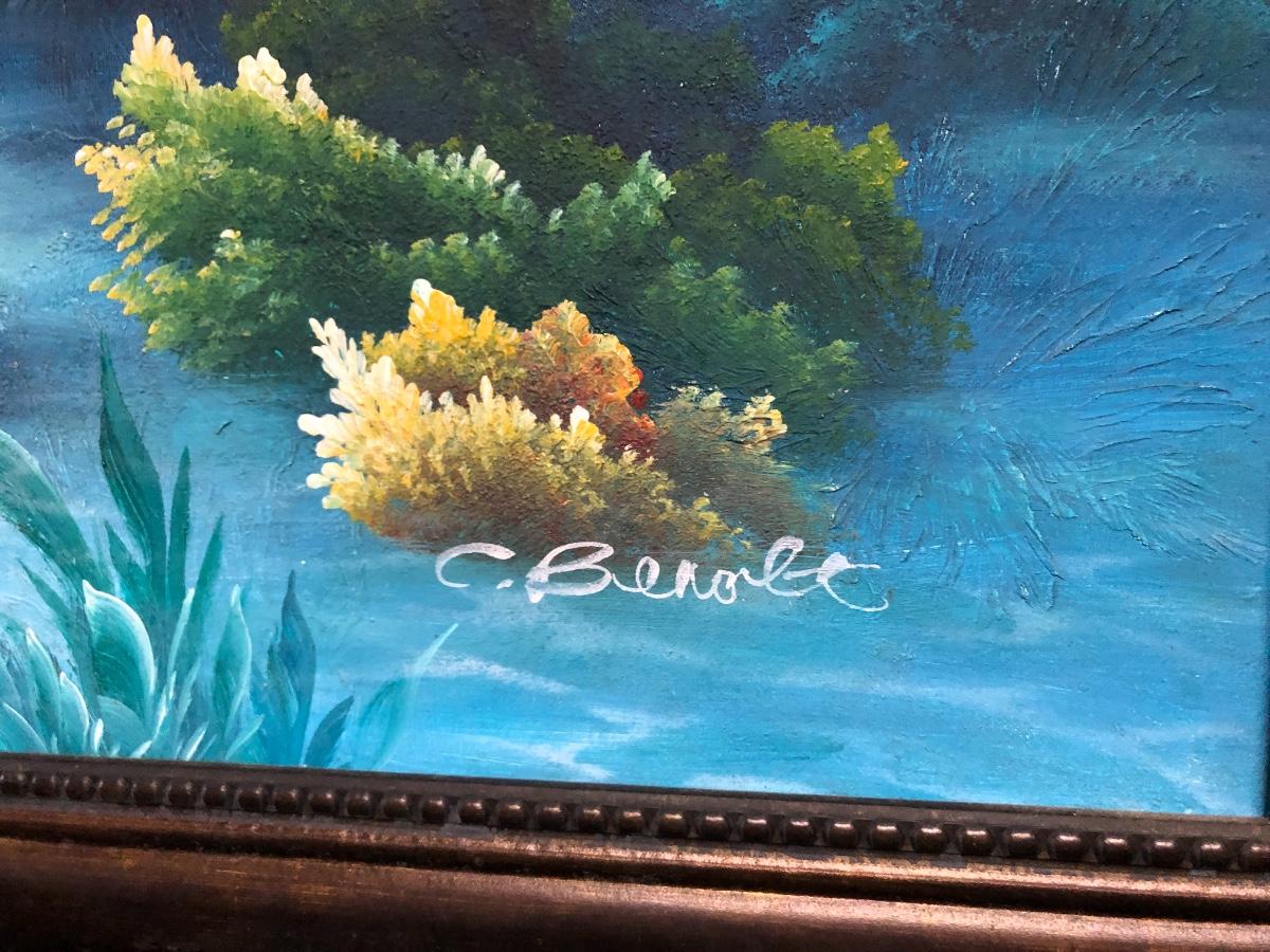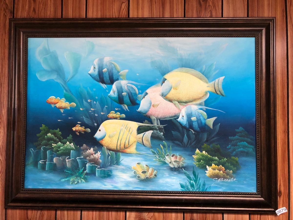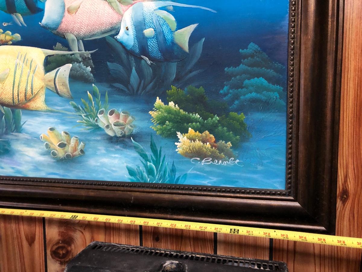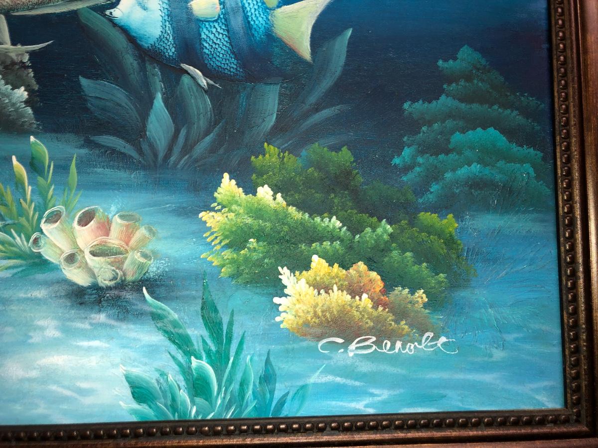 Lg Beautiful Oil Painting By C. Benolt - Tropical Fish Lot #0879