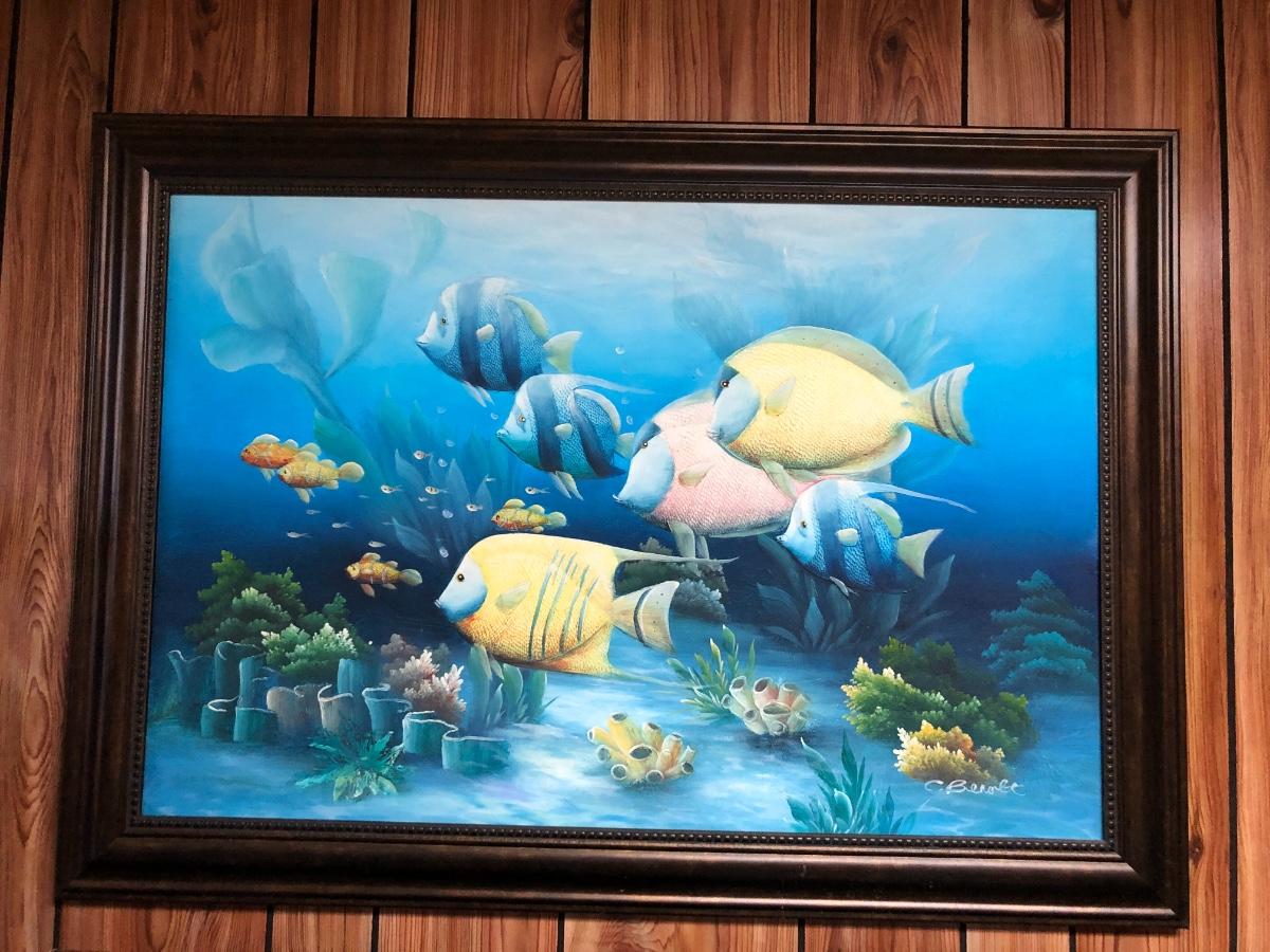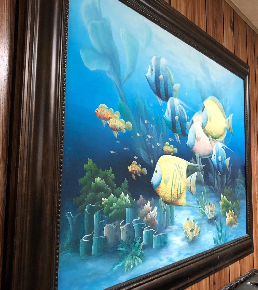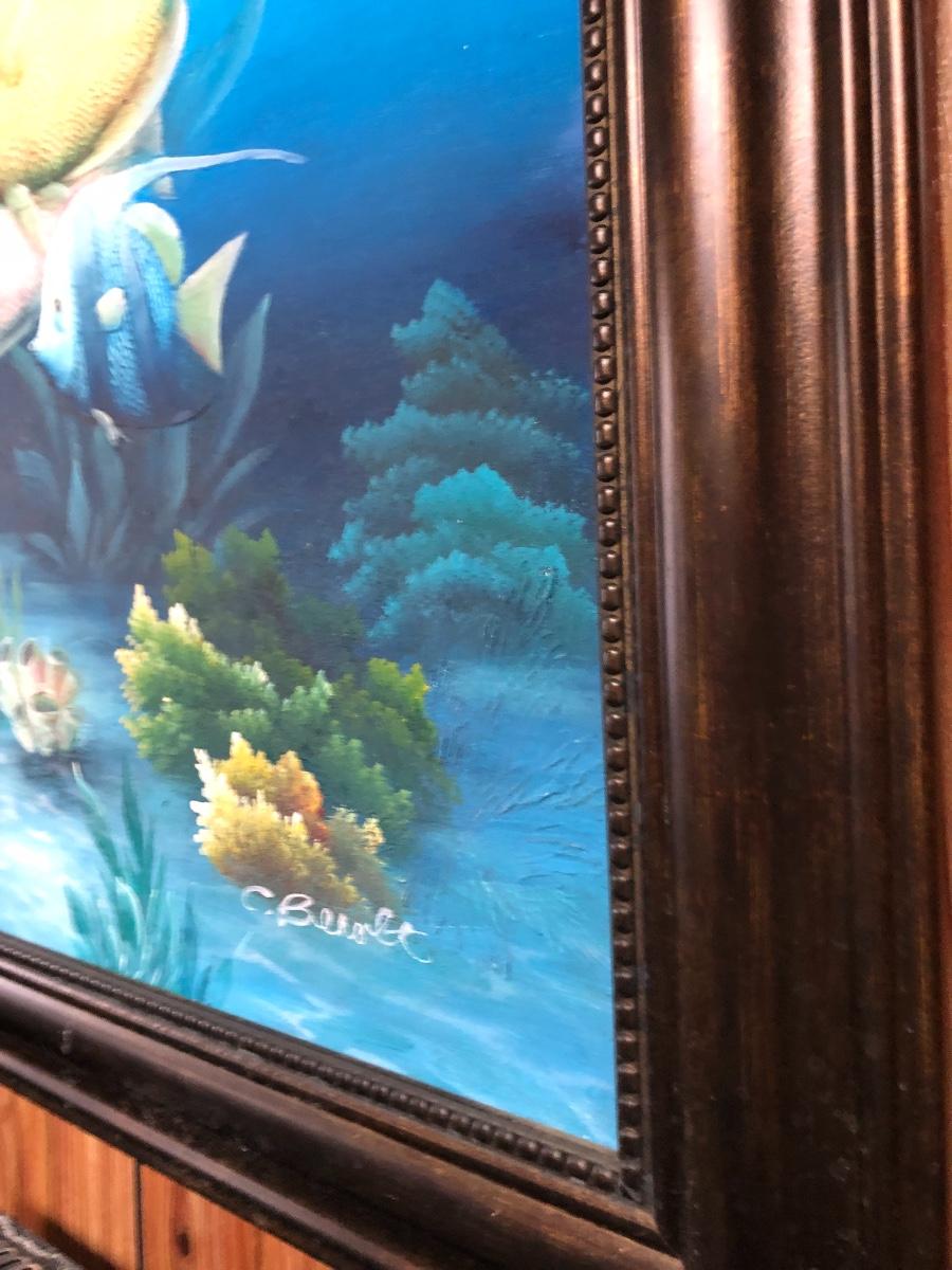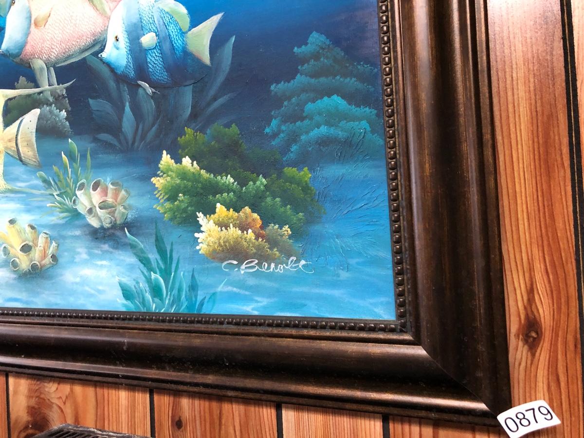 Lg Beautiful Oil Painting By C. Benolt - Tropical Fish Lot #0879