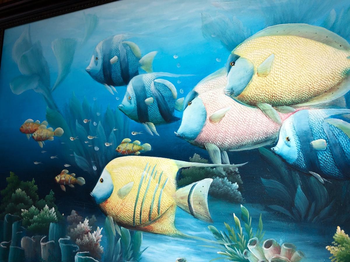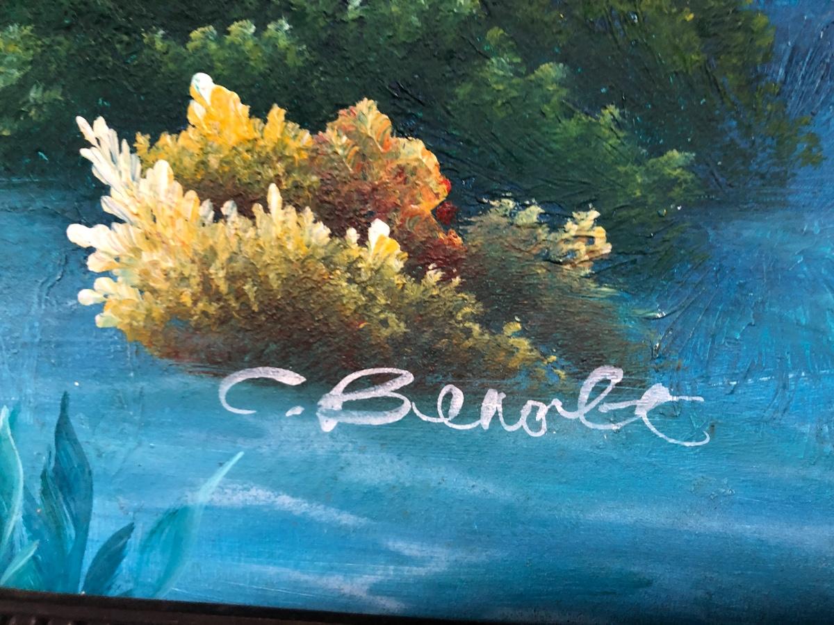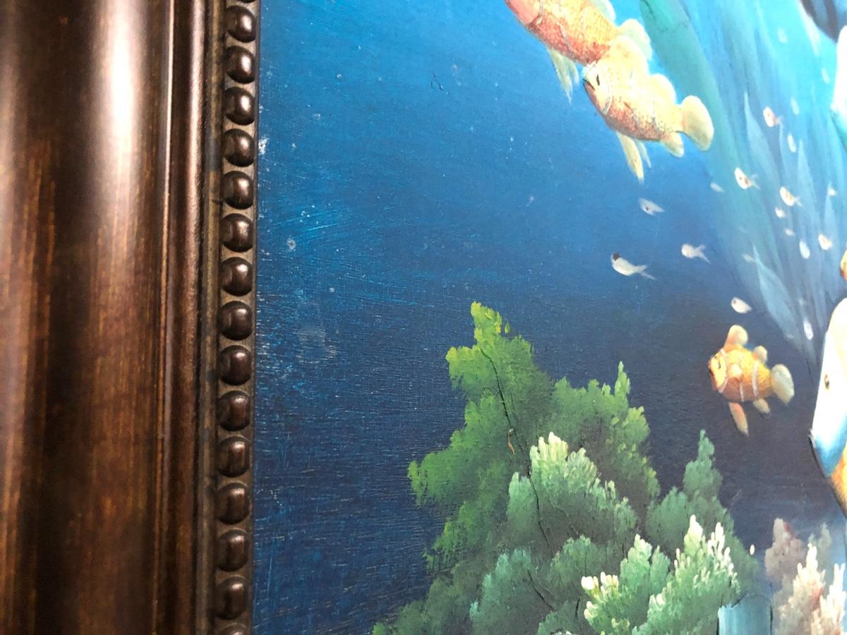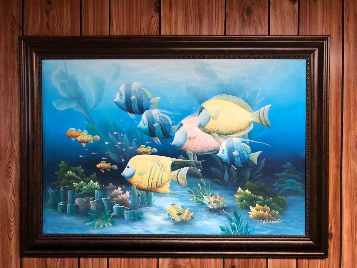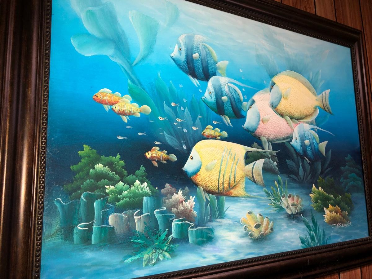 Lg Beautiful Oil Painting By C. Benolt - Tropical Fish Lot #0879