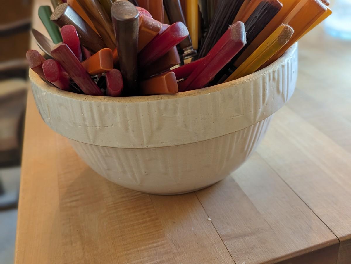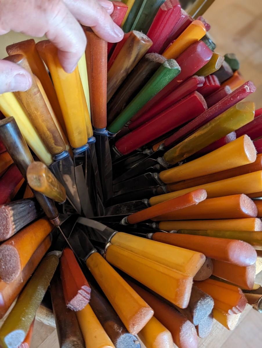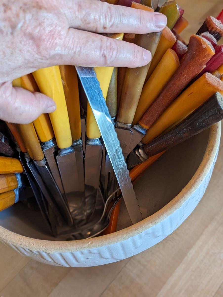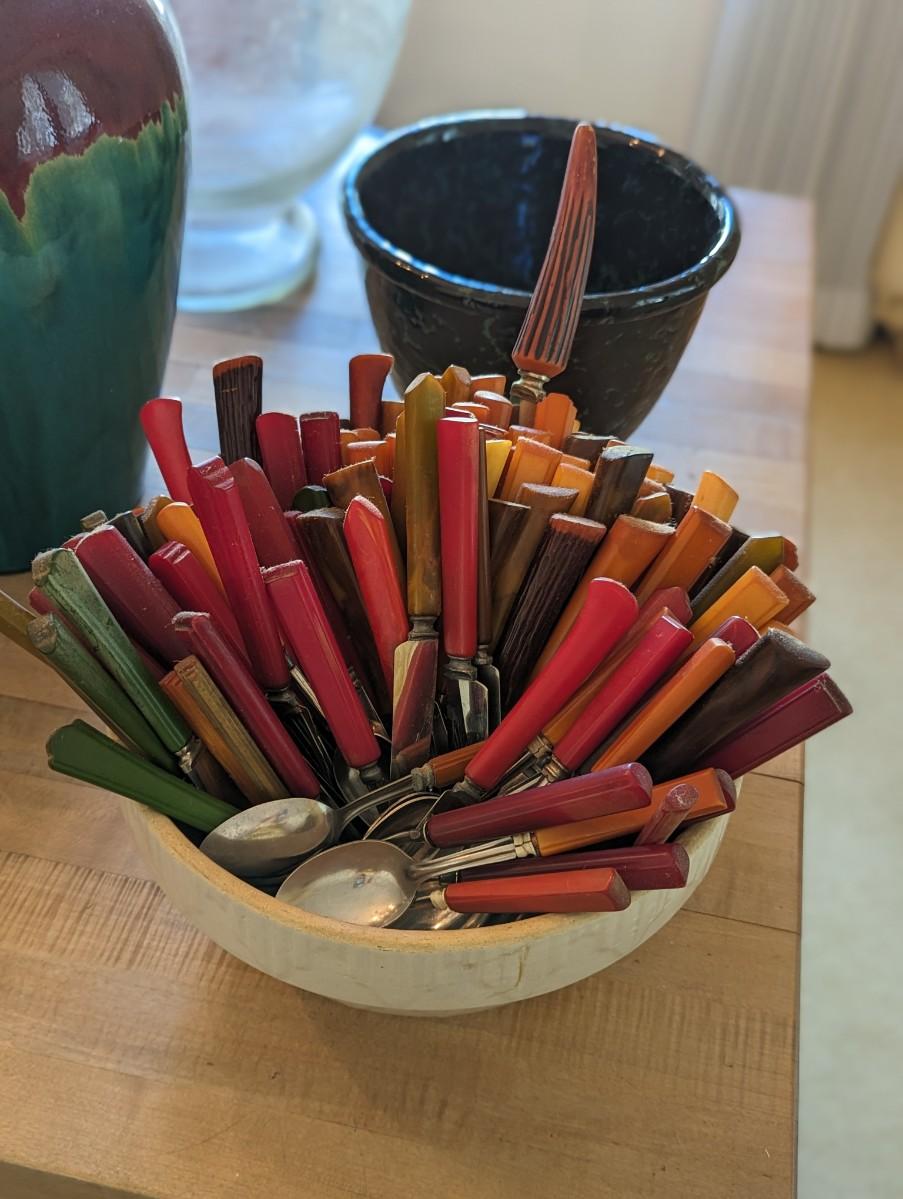 Lg Collection of Vintage Bakelite Stay Brite Stainless Steel Silverware, Includes Bowl