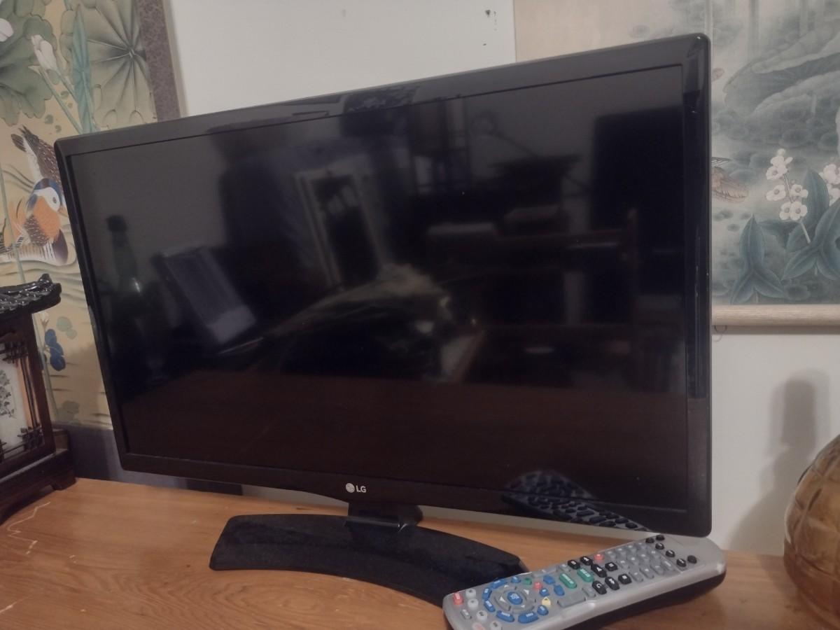 LG Flat Screen 24" TV with Universal Remote. Working condition unknown. Bid accordingly.