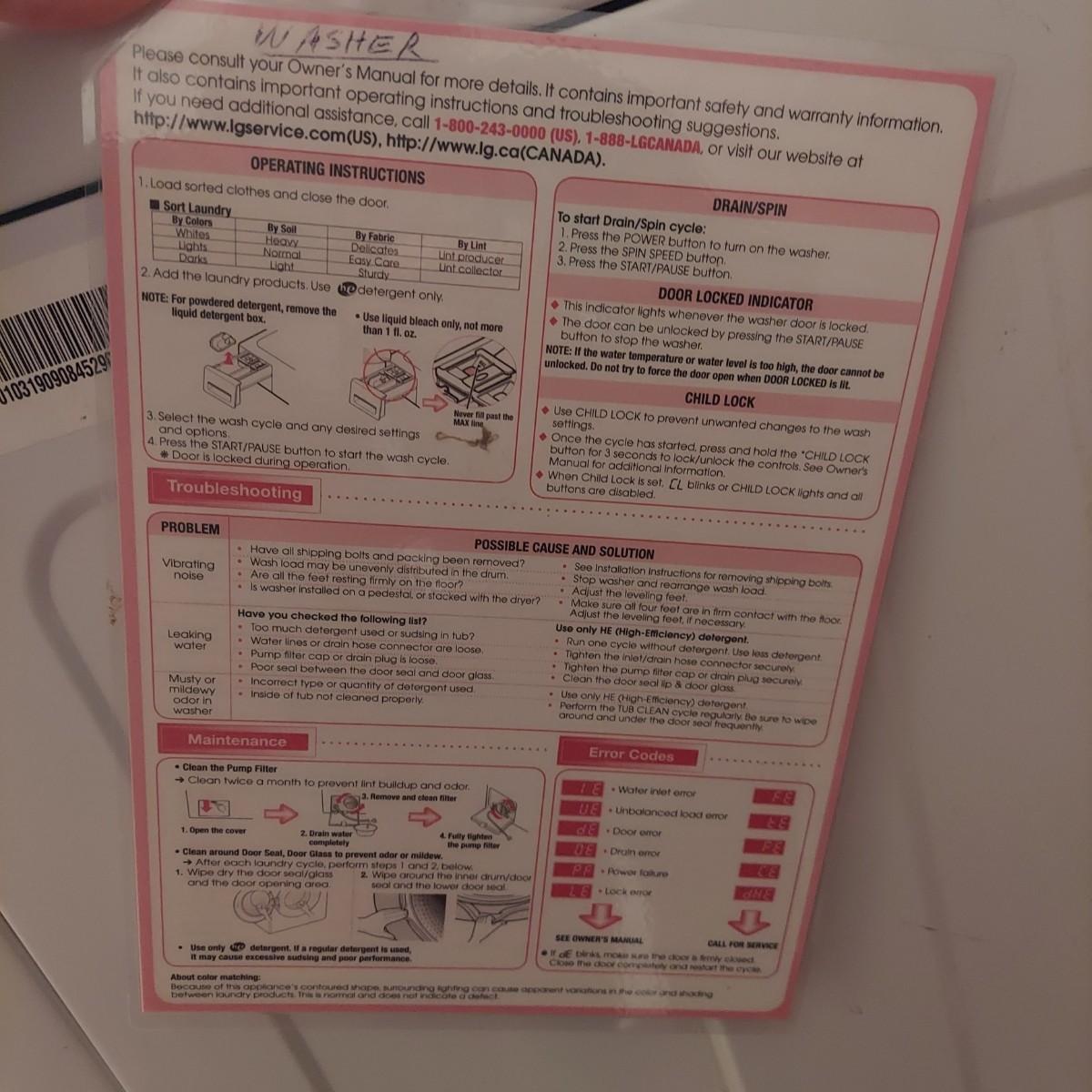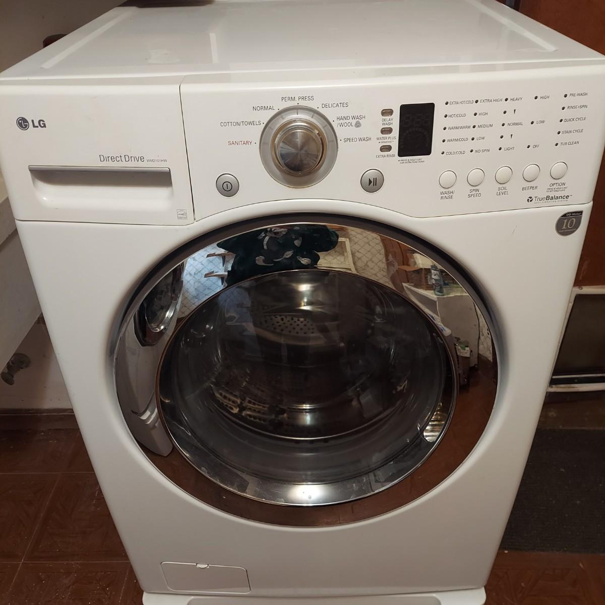 Front loading washer by LG. Model number can be found in photos. Unit alone measures approximately 27” x 28” x 40"H. It's 53"H including the pedestal. Some overall wear. Will need to be cleaned up. Water will be unhooked. Local Pickup Only. Winning bidder must bring assistance to help move and load this item due to its weight and/or size.