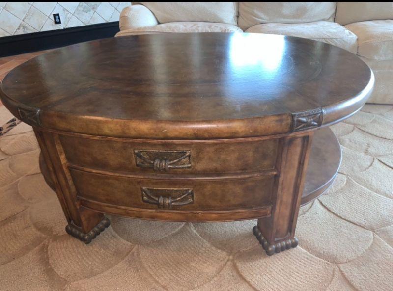 Lg Leather Top Coffee Table 53”W X 42”D X 22”H