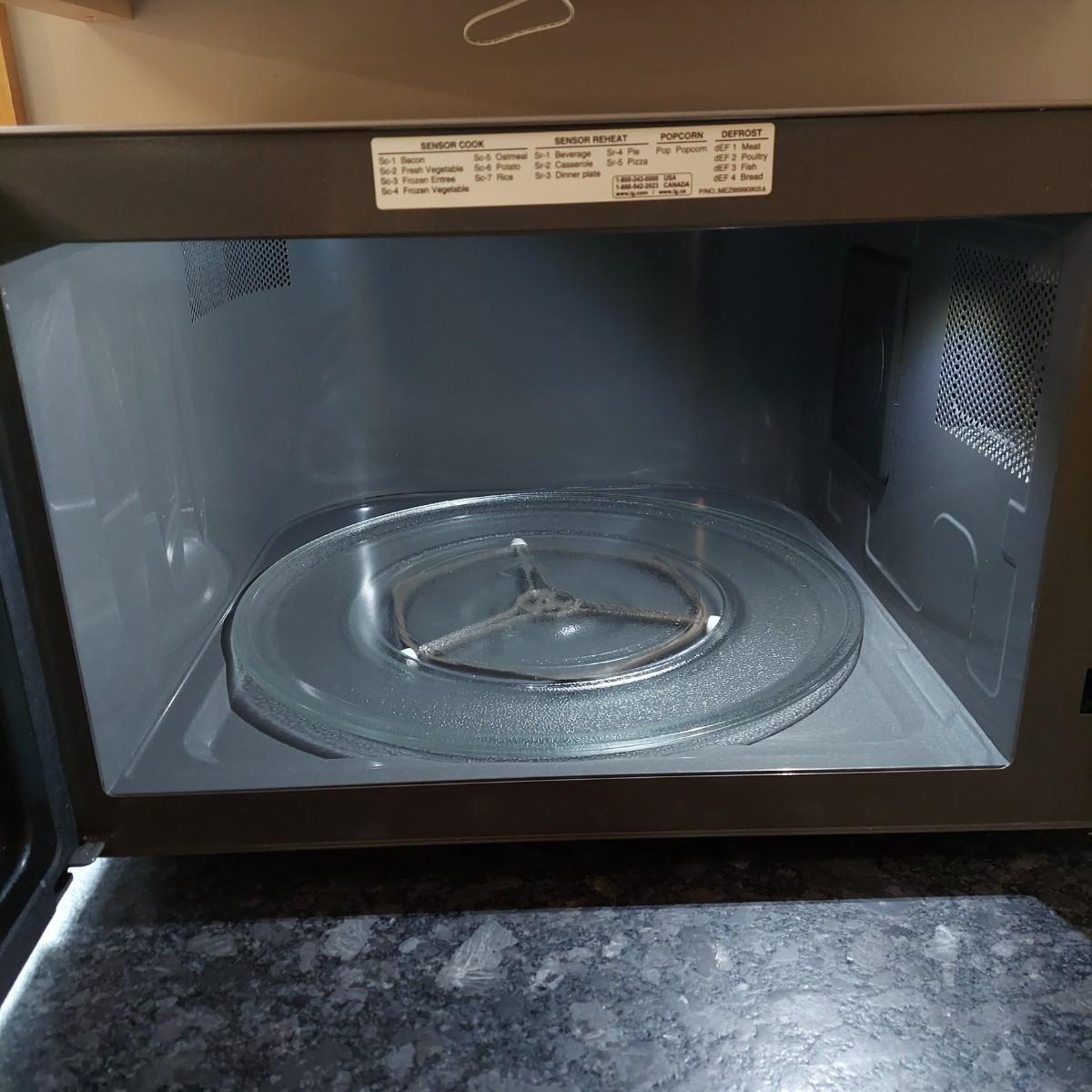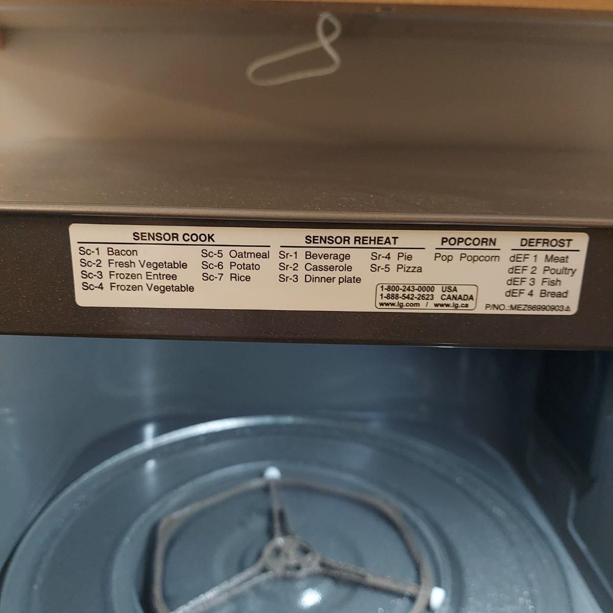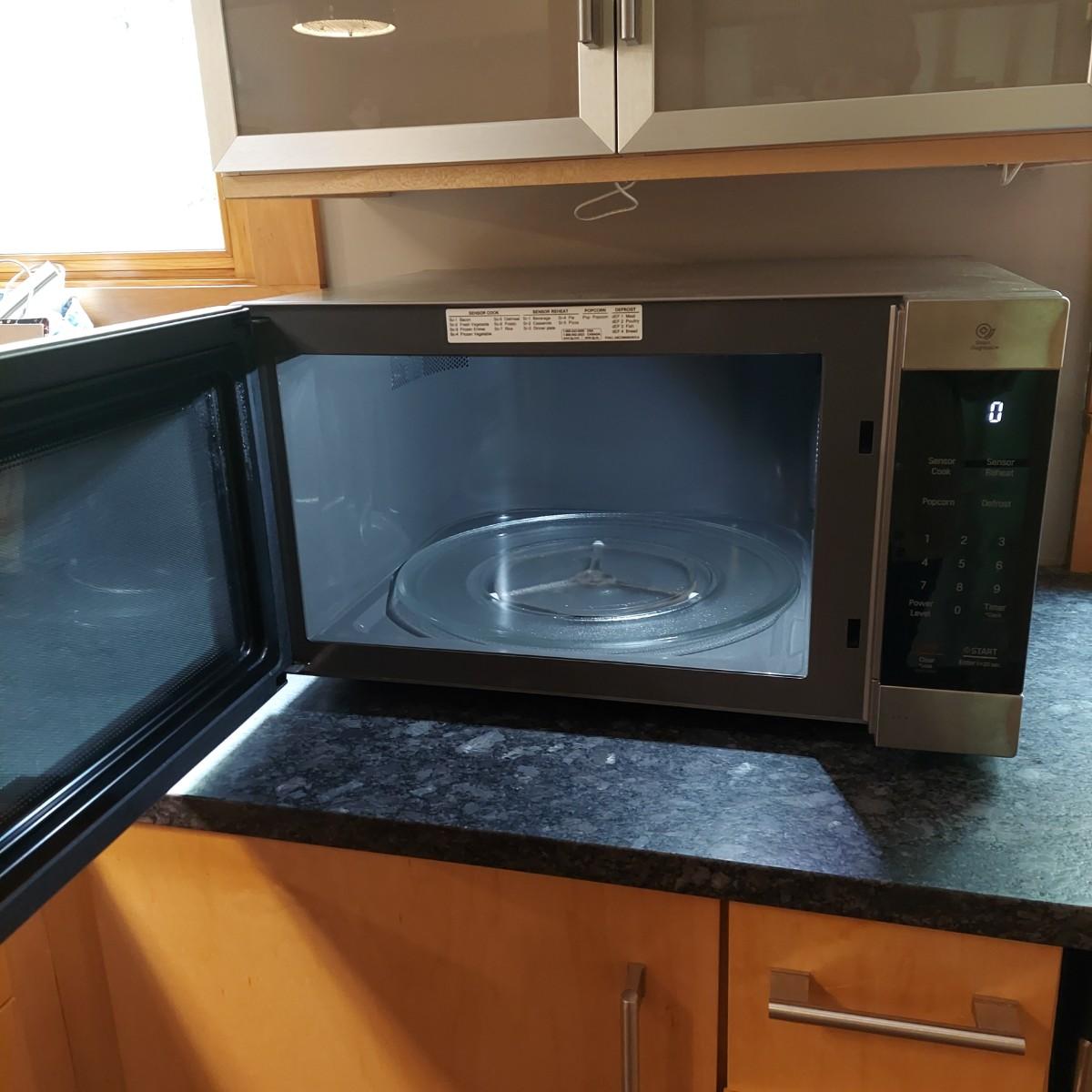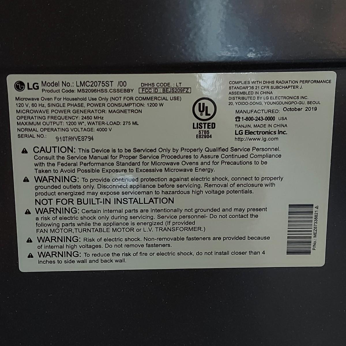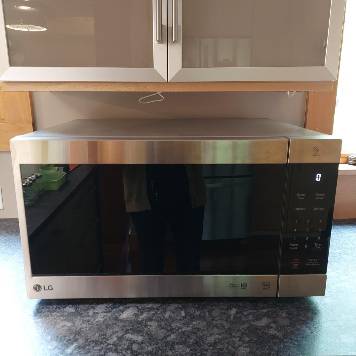 Stainless LG NeoChef Smart Inverter Magnetron microwave with touch controls. Measures 24 x 18 x 13.5"H. Comes with owners manual and plastic dish cover shield. Microwave powered on when plugged in. Local Pickup Only.