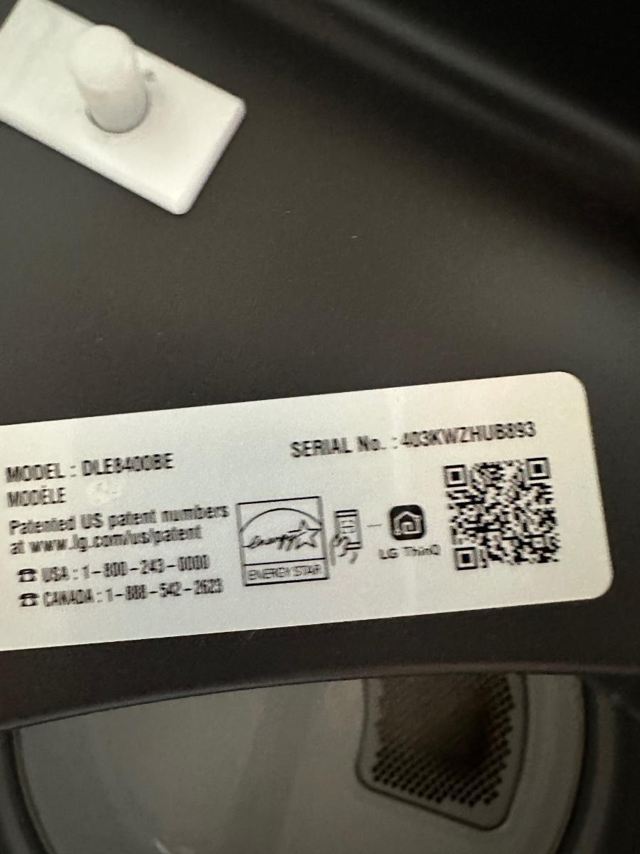 • Dryer Model: DLE8400BE. Electric (not gas)