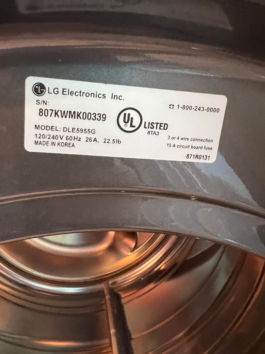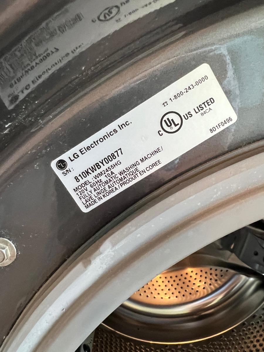 LG Washing Machine model: WM2455HG, LG Dryer model :DLE5955G. These were only used in a vacation home, so they were rarely used.