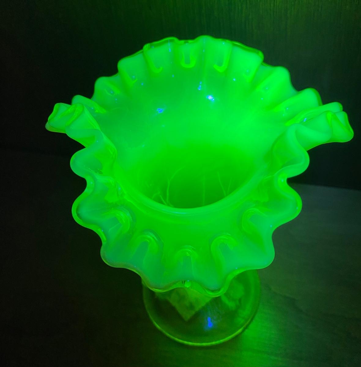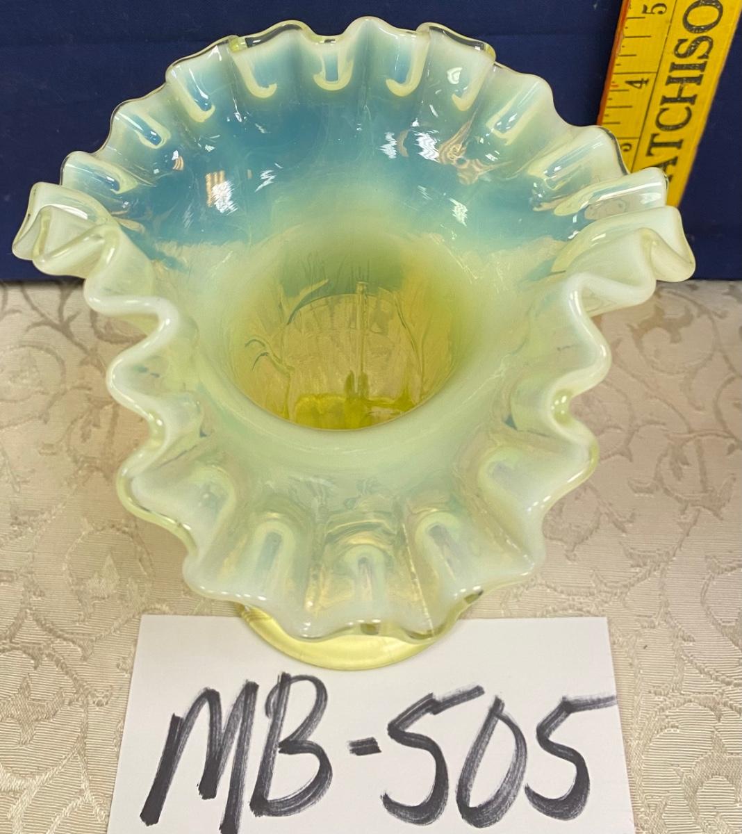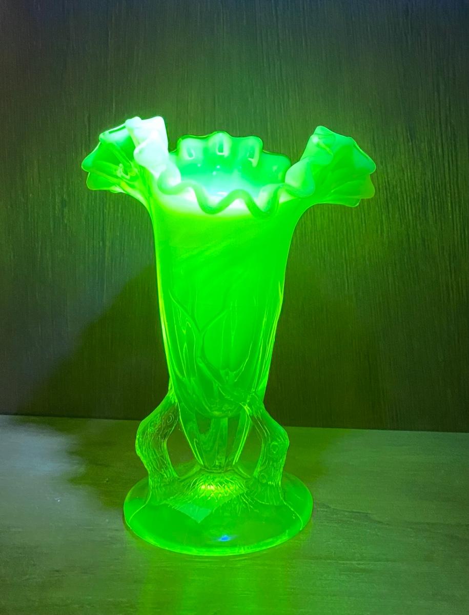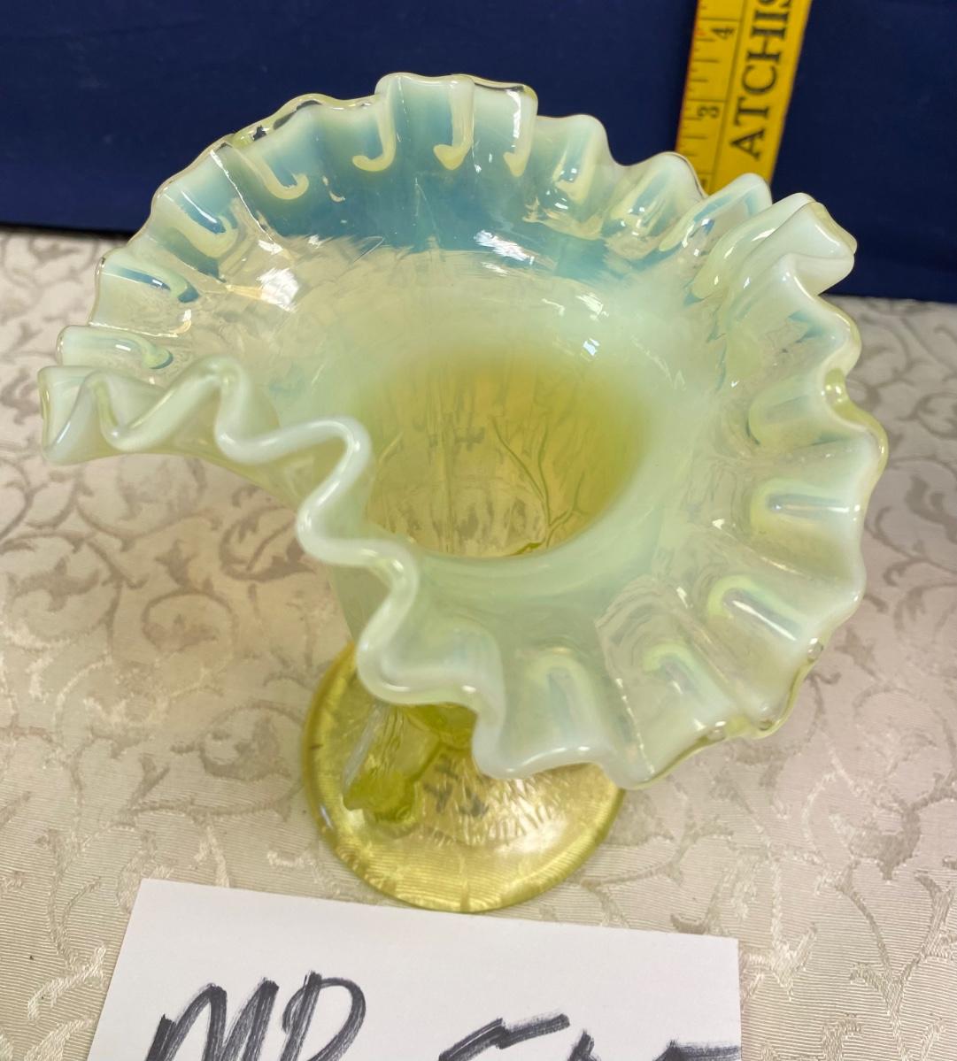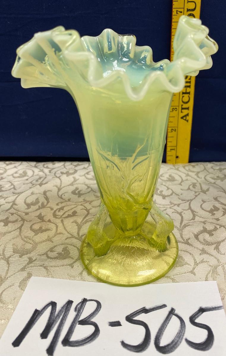 LGWright Glass CompanY Twig Vaseline Opalescent