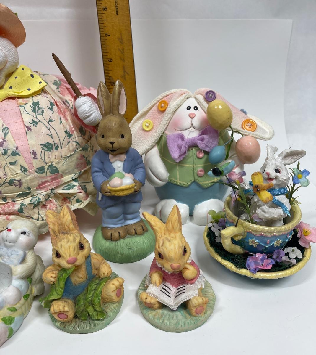 Easter Figurine Lot: 9 Bunnies, Various Sizes and Materials