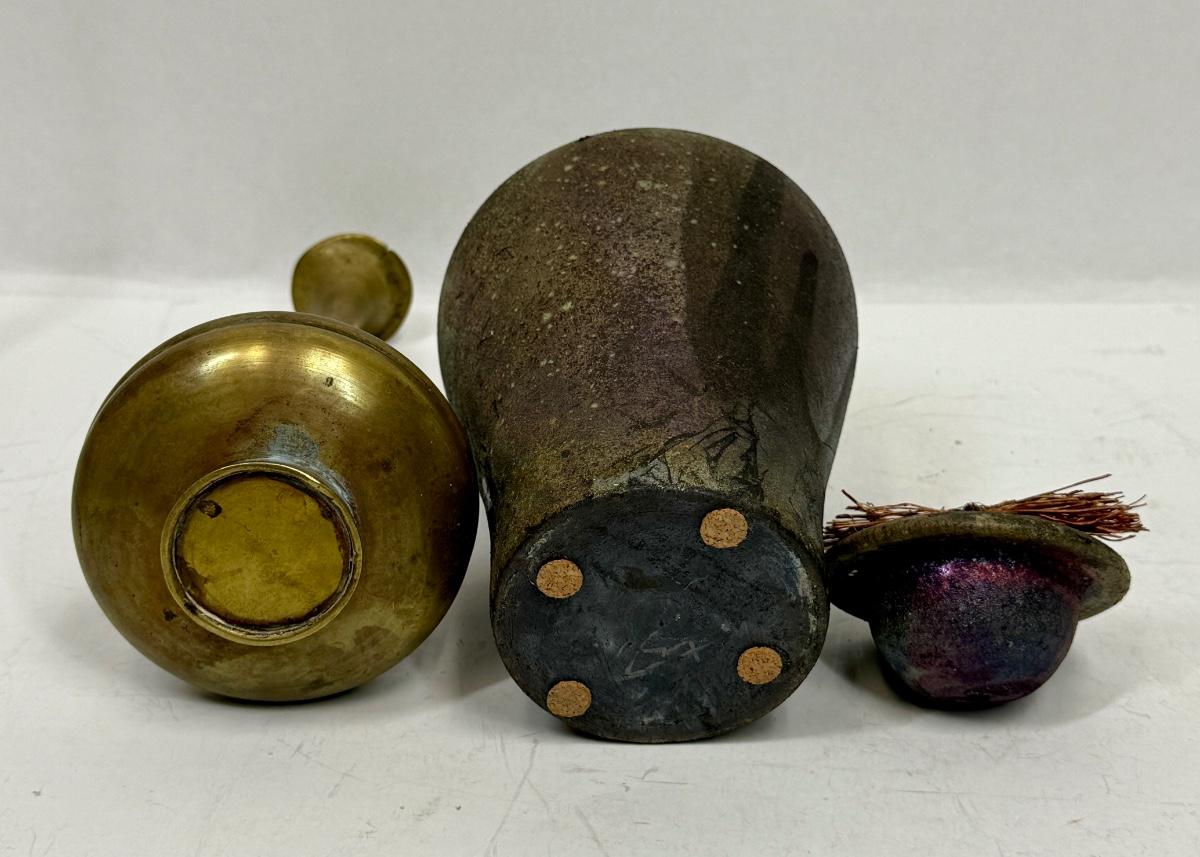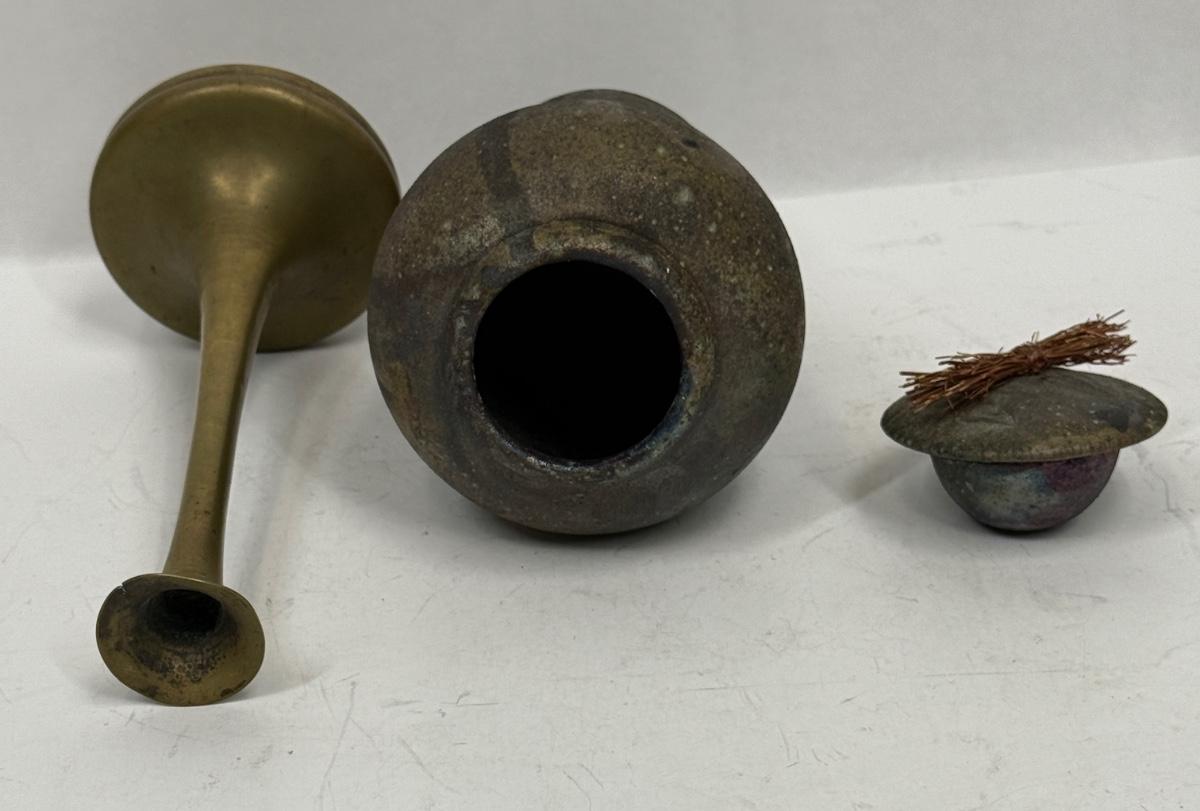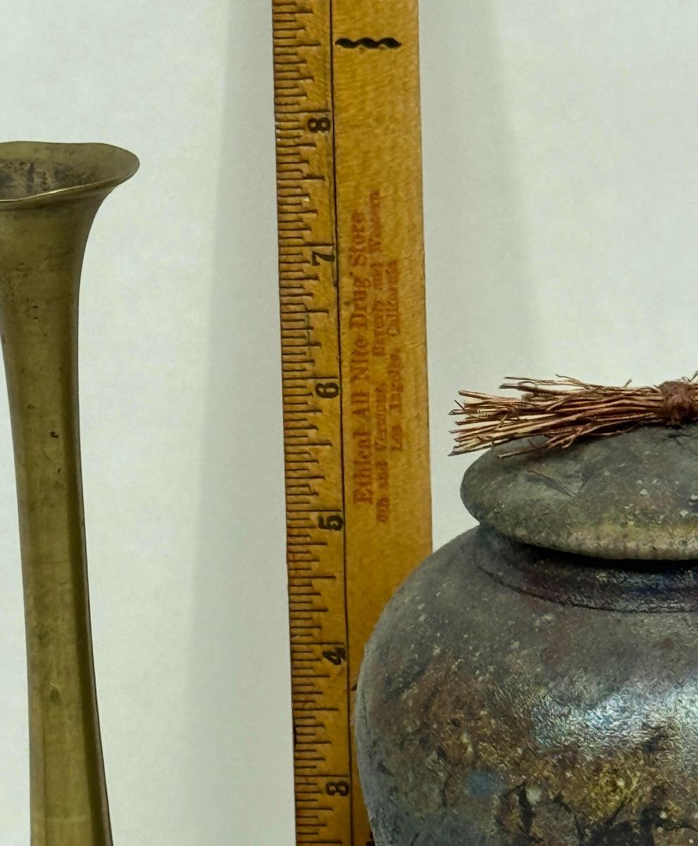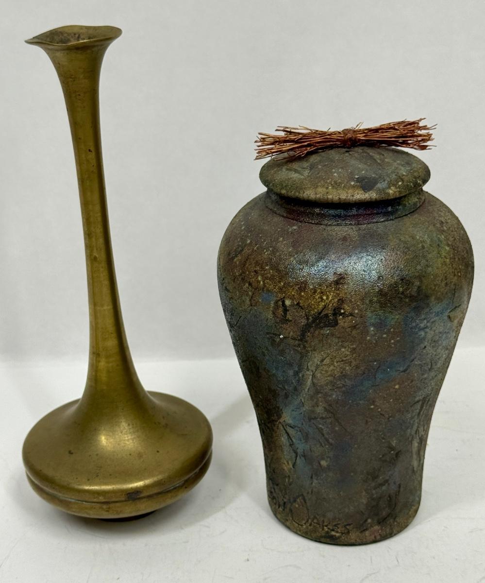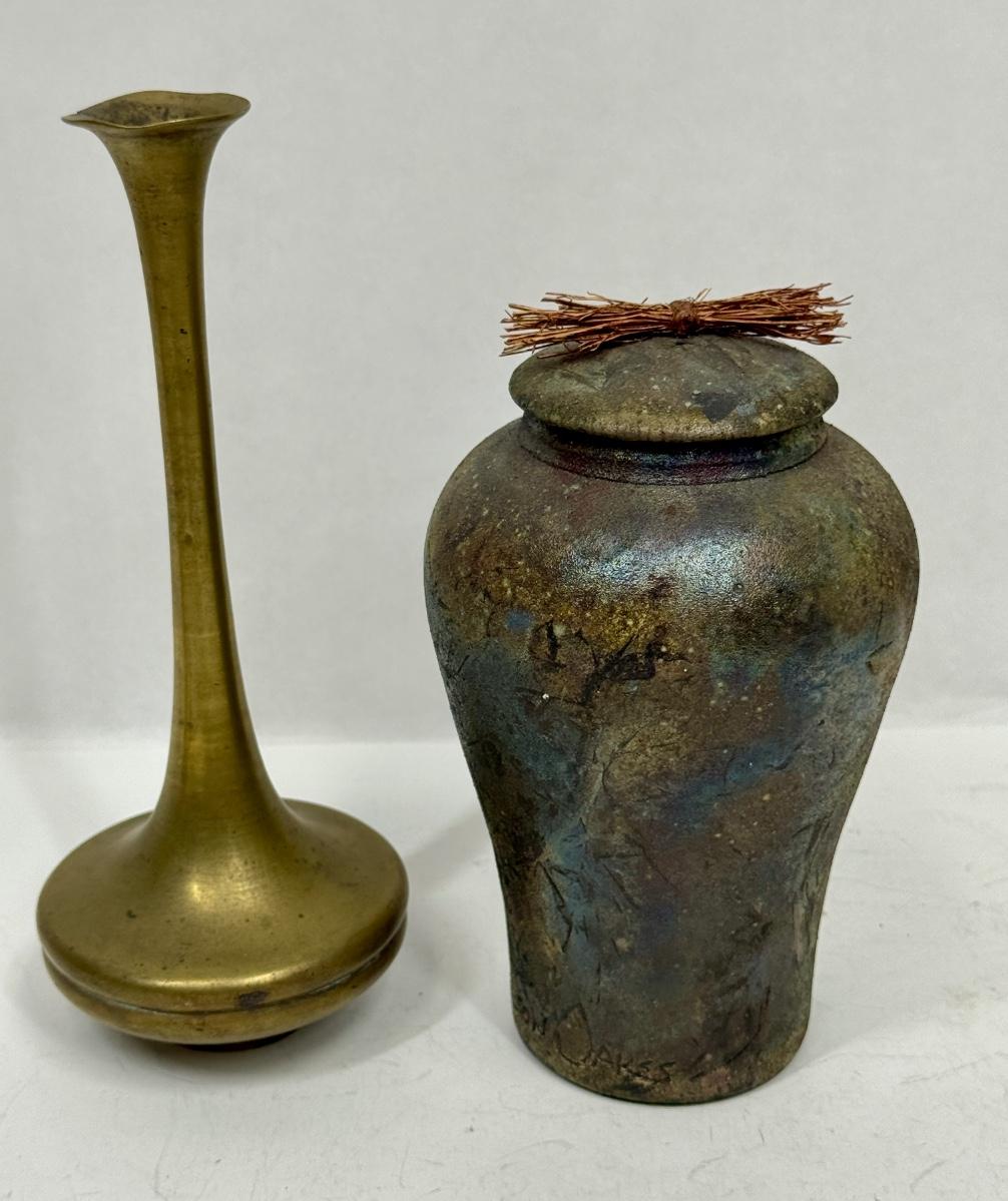 Decor Lot - Glazed Ceramic Lidded Jar & Brass Vase