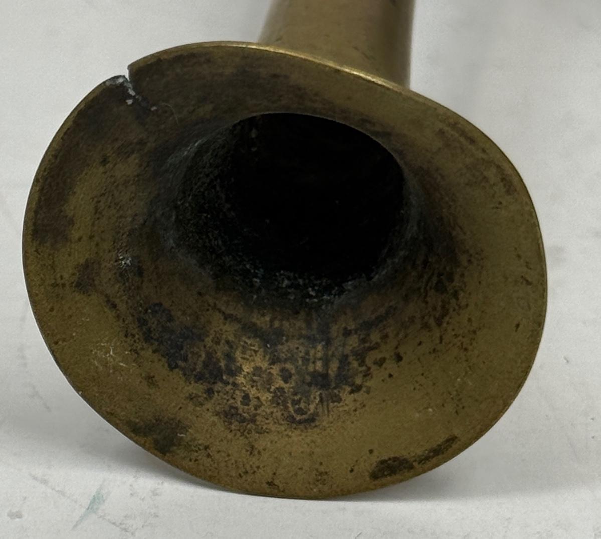 In good previously owned condition, but there is a small chip in the rim of the brass vase (see photos)