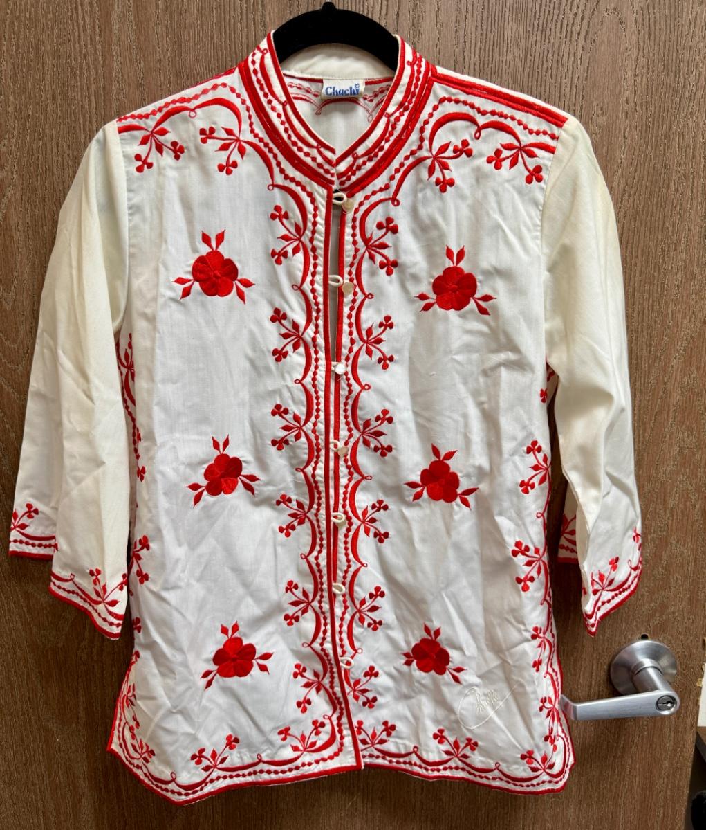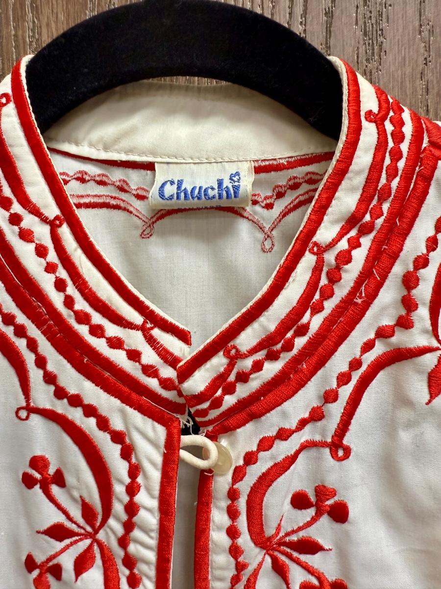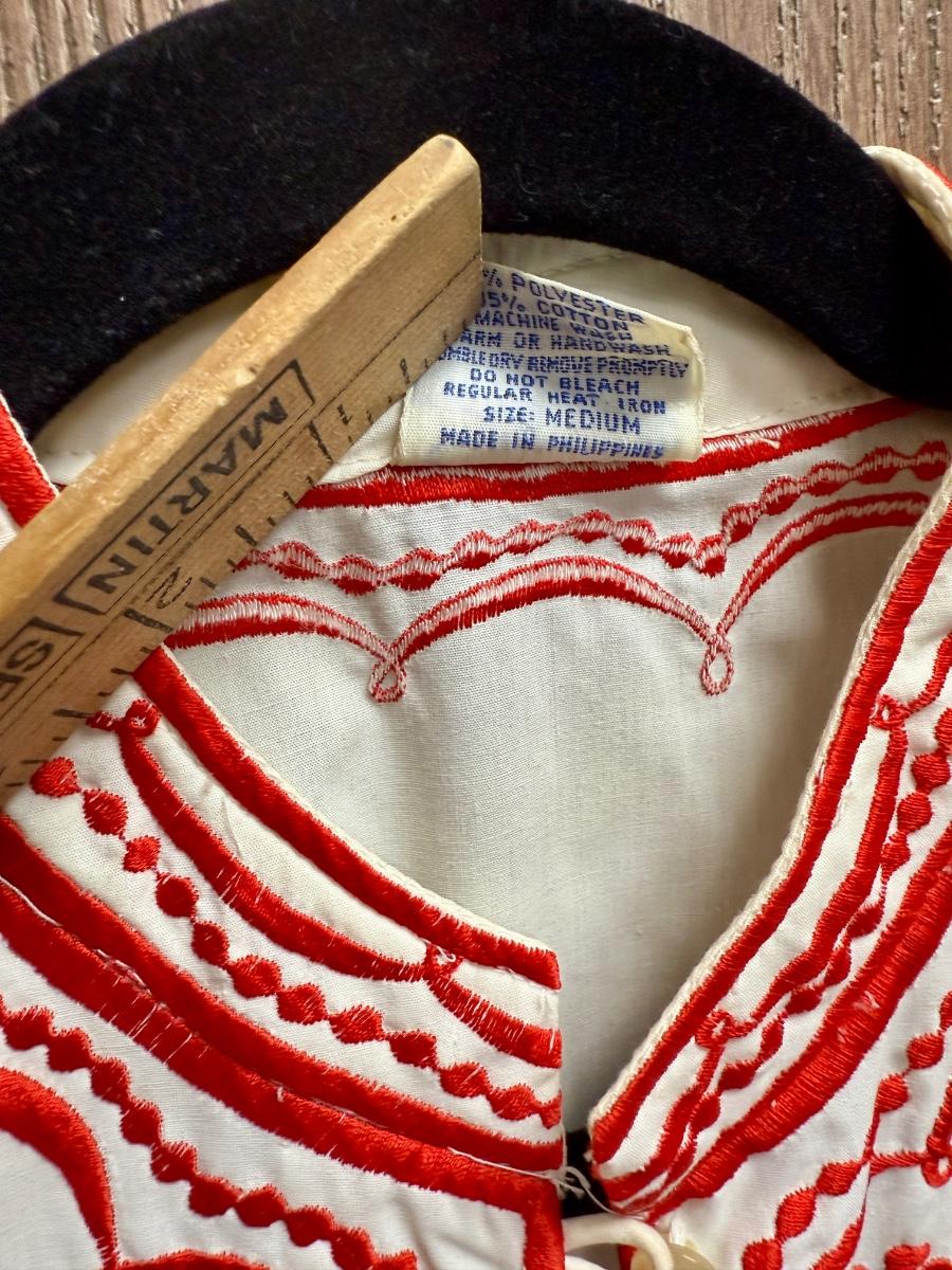 Vintage Clothing Tunic Top Blouse Embroidered Red on White