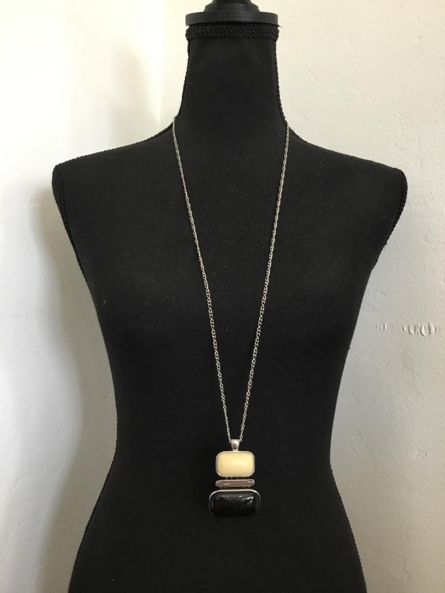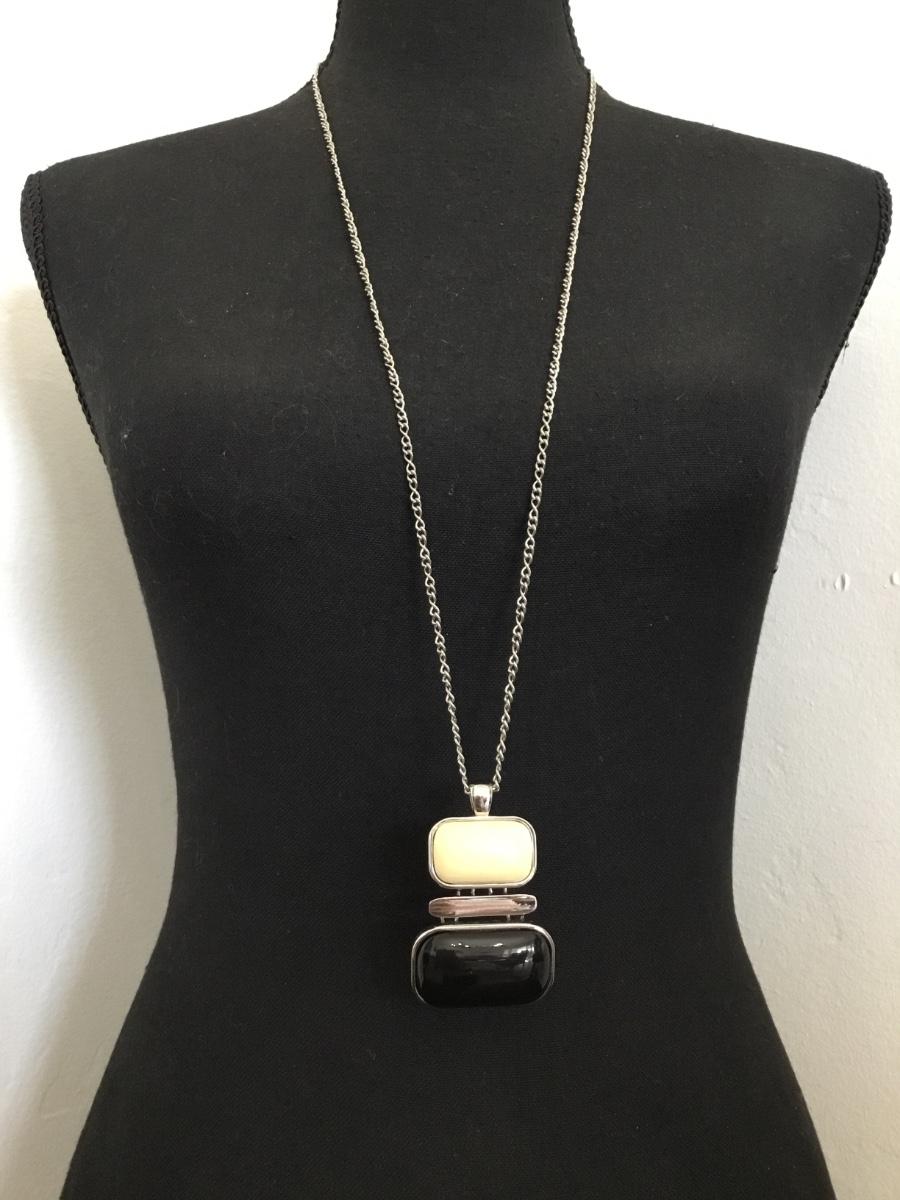Lia Sophia, long, silver tone, chain cream, black enamel, silver toner, pendant statement, fashion, necklace