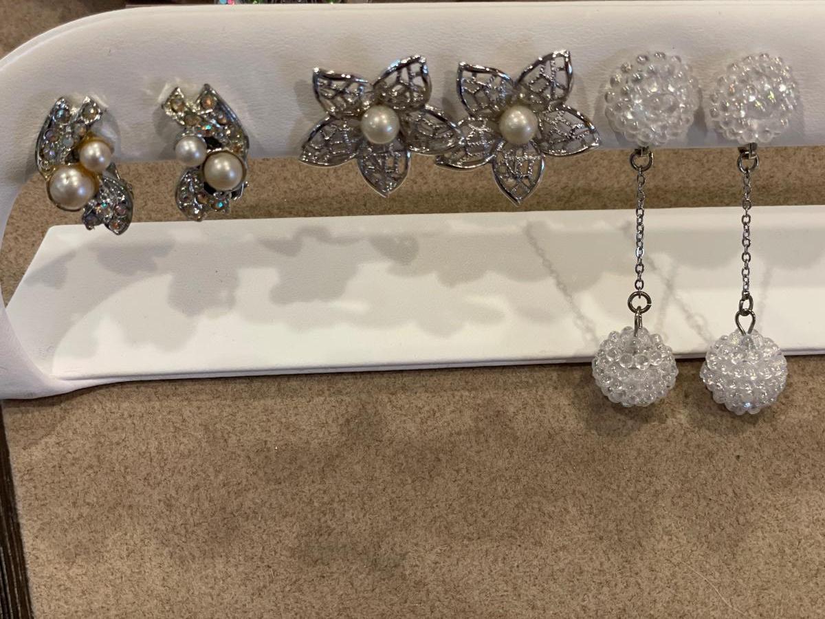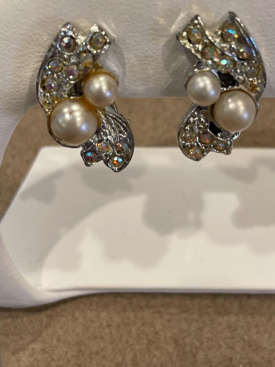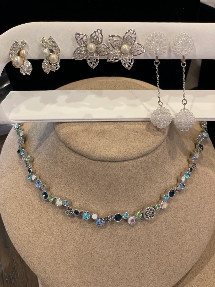 Lia Sophia necklace & 3 silvertone clip on earrings