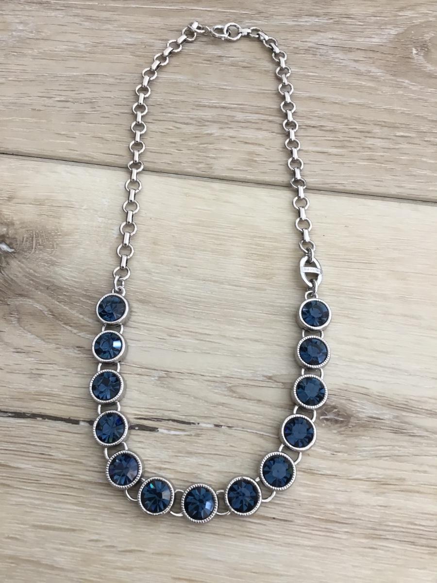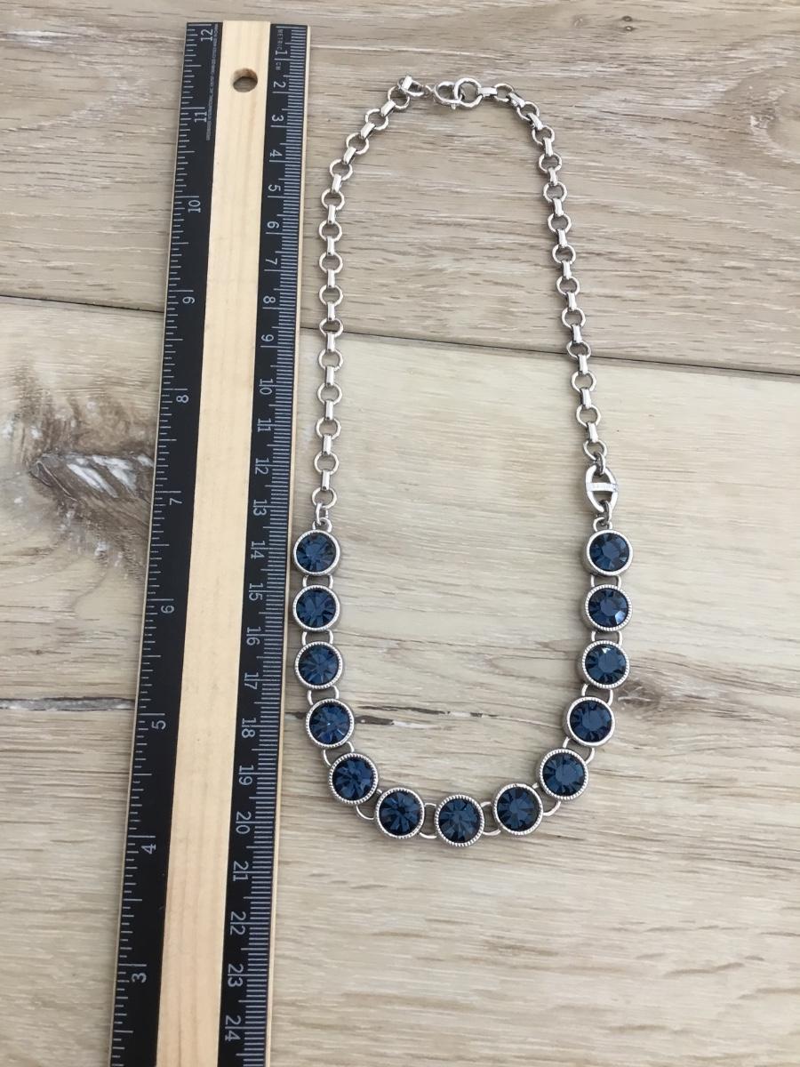 Lia Sophia, sapphire, blue rhinestone, silver tone, statement, necklace