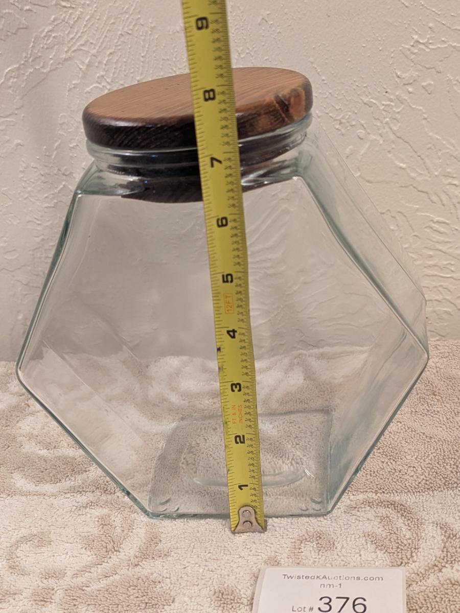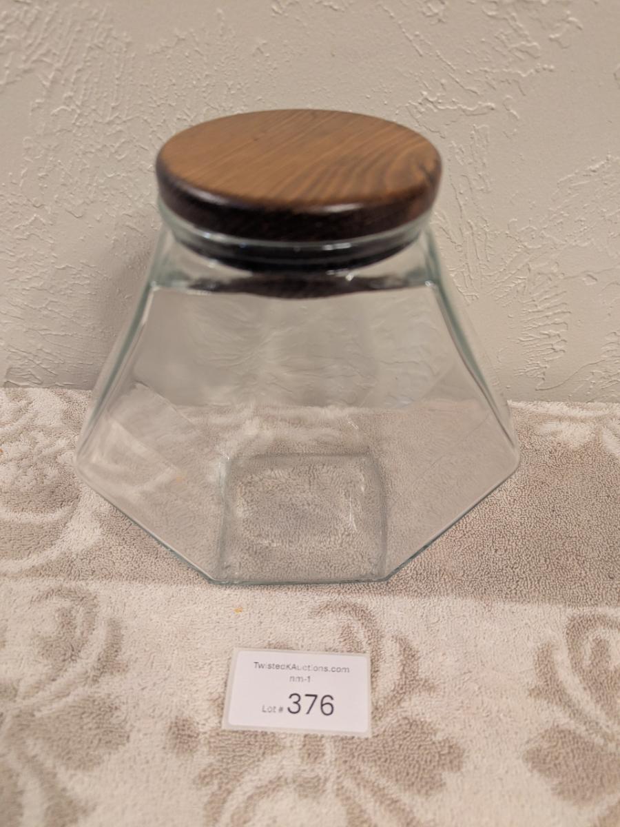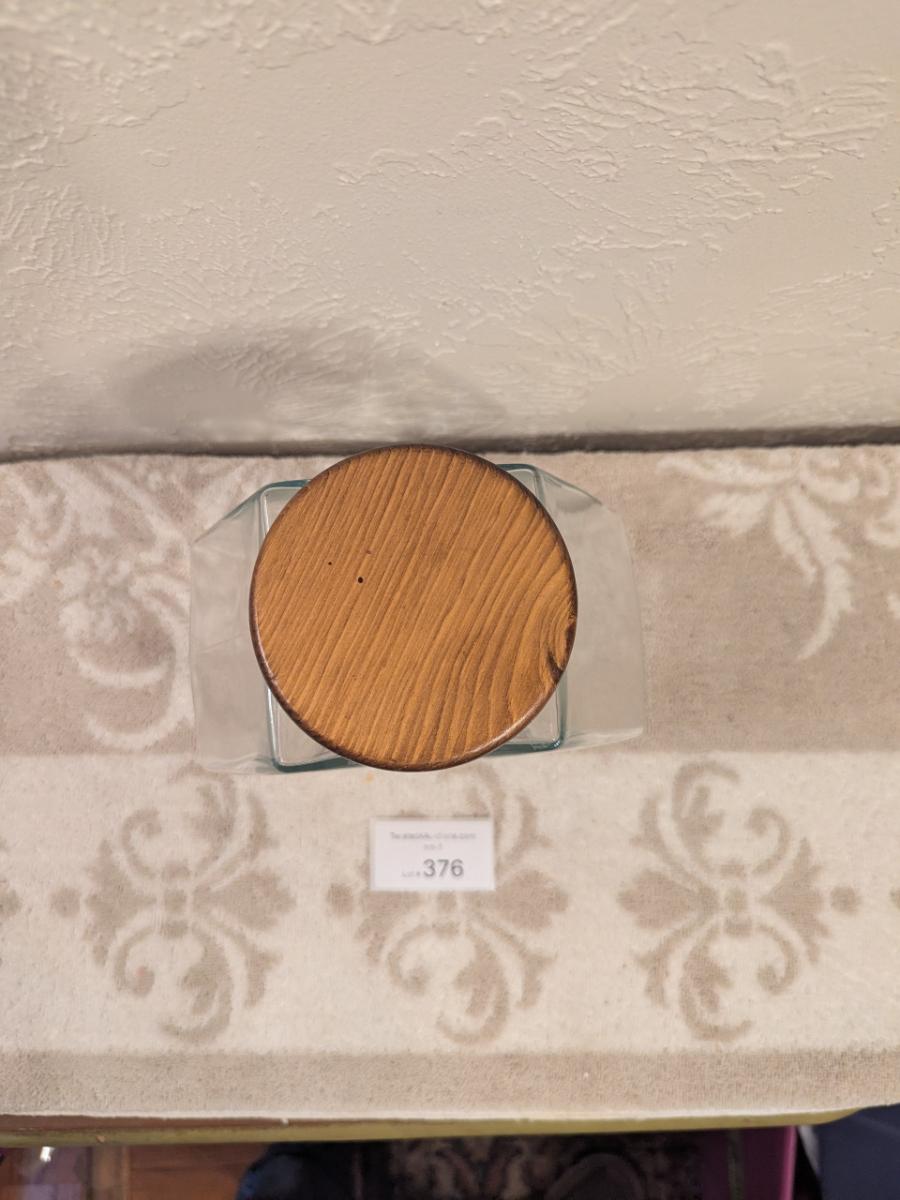 Libbey glass candy jar with wood lid