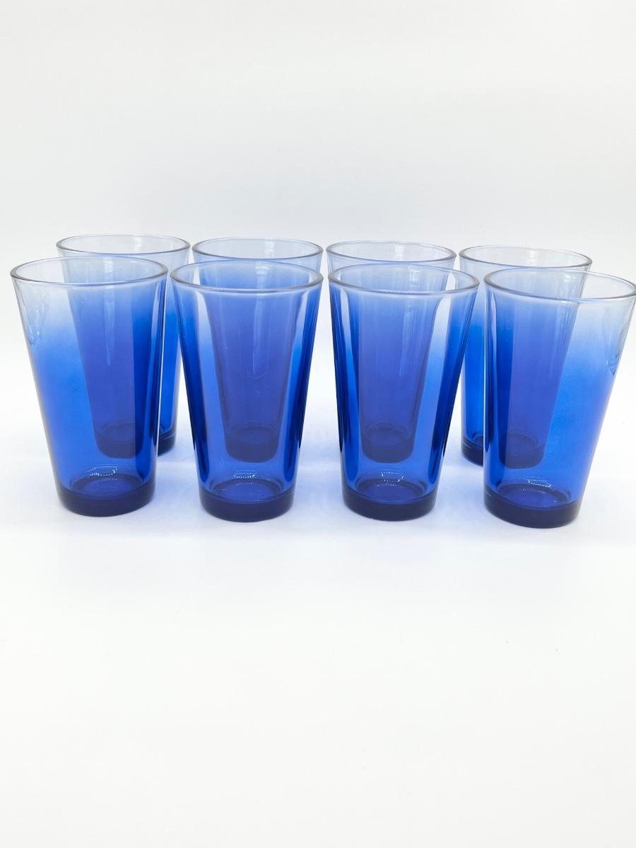 LIBBEY GLASS ~ Cobalt Blue Ombré ~ Set Of Eight (8) Tumblers