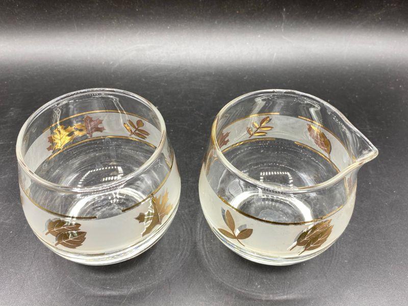 Libbey Glass Gold Leaf Cream and Sugar Set