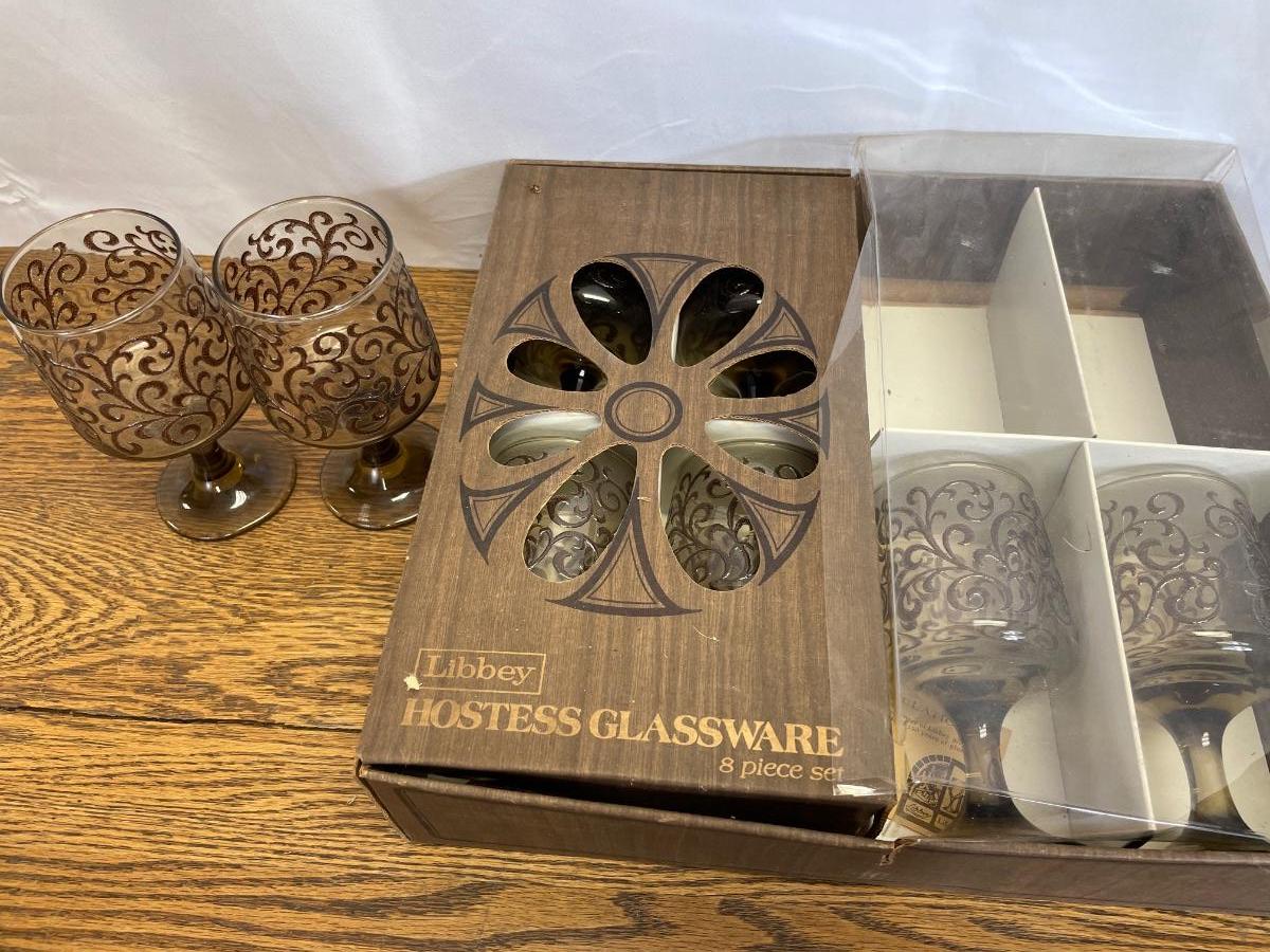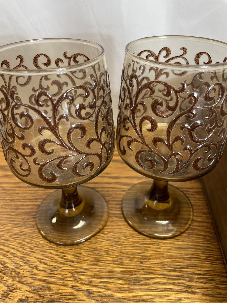 Libbey Hostess Tawny Brown Prado Raised Scroll Design footed goblets