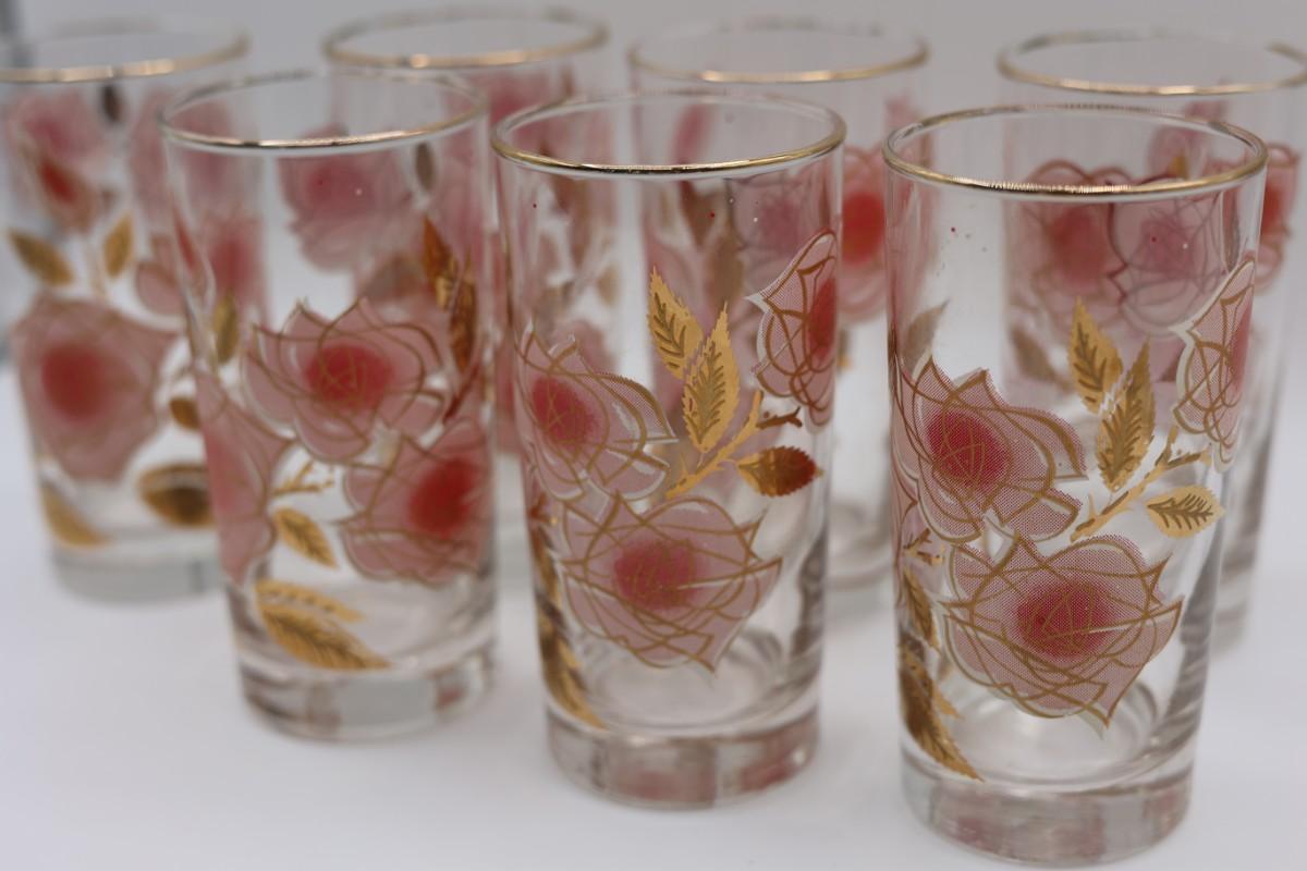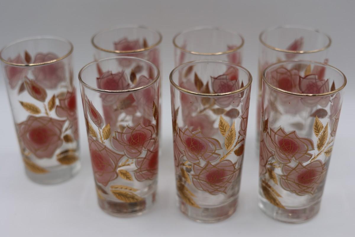 Libbey Set of 7 Rose Drinking Glasses.