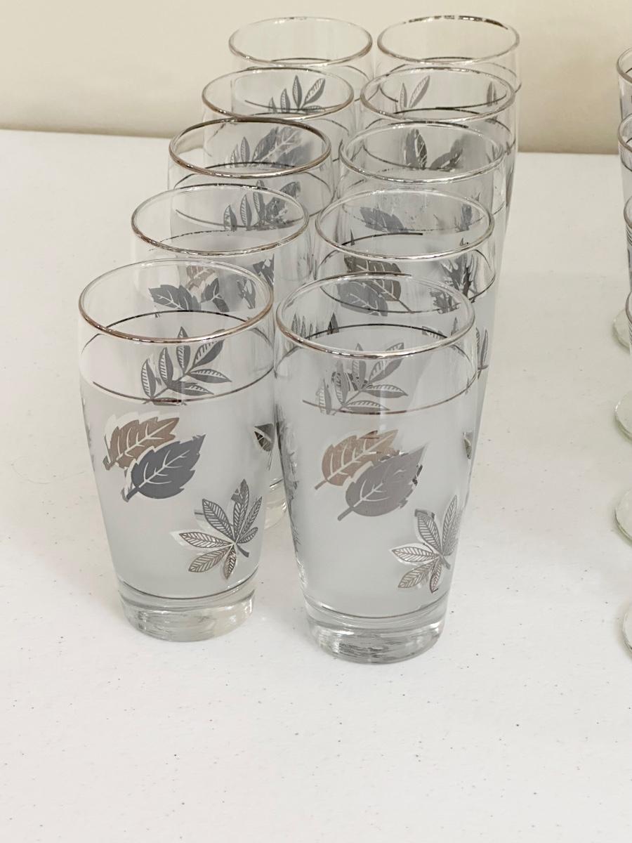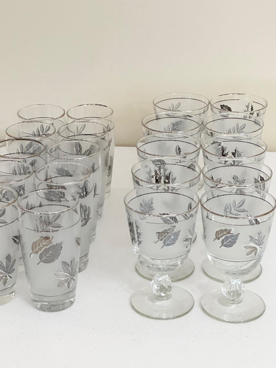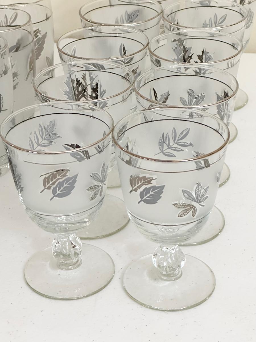 LIBBEY ~ Silver Leaf ~ Set of Twenty-Four (24) ~ MCM Frosted Glasses
