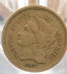 Liberty 1867 Three Cent Nickel Circulated (R3)