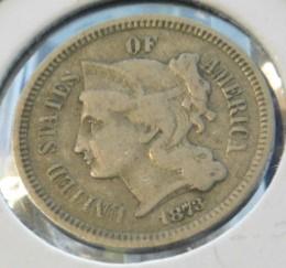 Liberty 1873 Three Cent Nickel Circulated (R1)