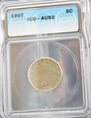 Liberty 1907 V Nickel ICG AU-50