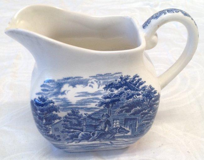 Description: Blue and white Paul Revere Liberty Blue creamer. Material : Porcelain. Measurement approximate: 4 Inches Height. Shipping cost: $14 excluding Hawaii, Alaska and California.