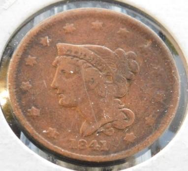 Liberty Capped 1841 One Cent US Mint Circulated (R4)