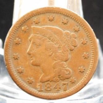 Liberty Capped 1847 One Cent US Mint Circulated (R9)